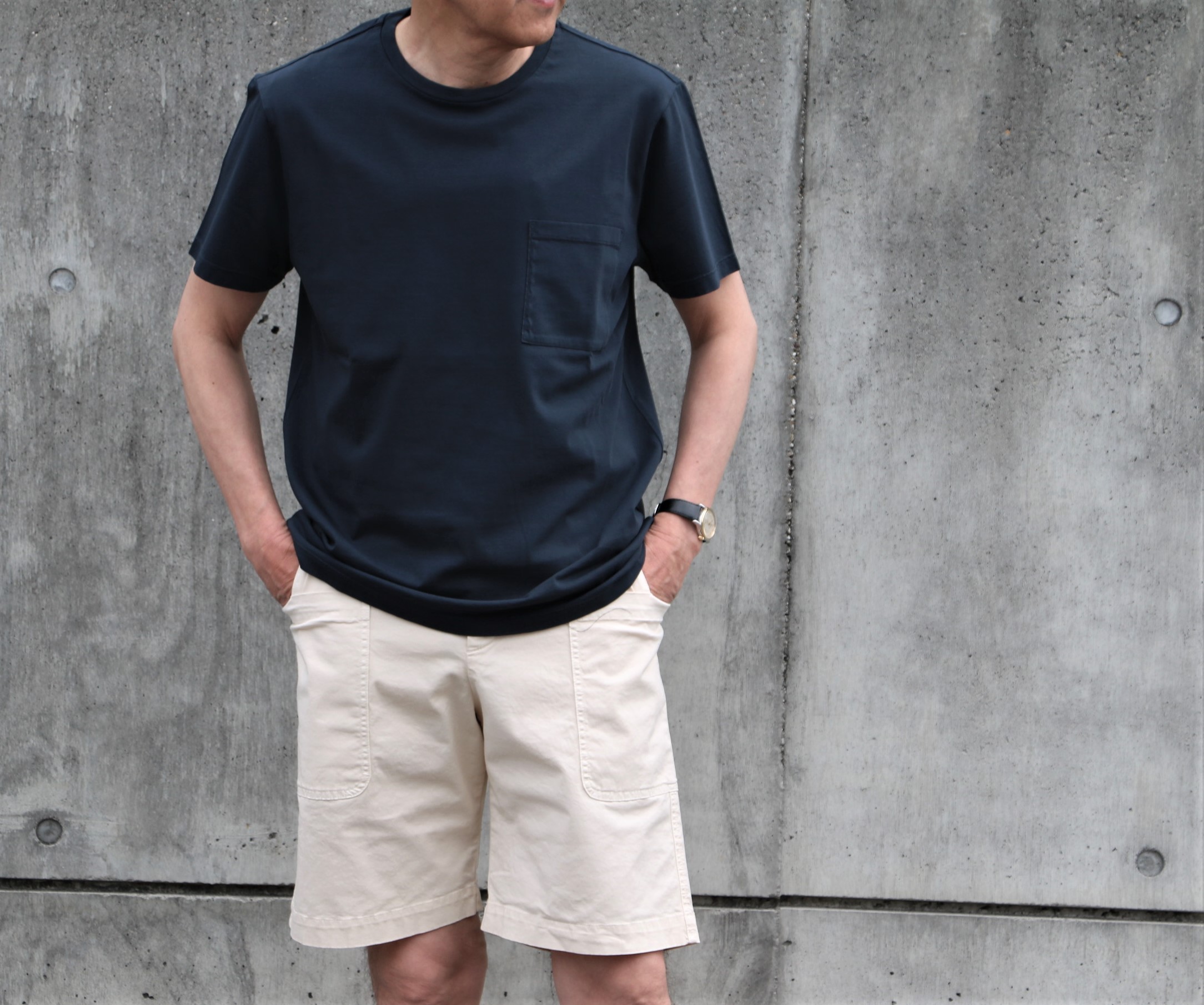 【BARENA/バレナ】2021年春夏セレクト最後のご案内は、ショーツです。両サイドのスラントポケットに重ね付けしたパッチポケットが特徴のワークショーツ。ポリウレタン2%のストレッチコットンです。