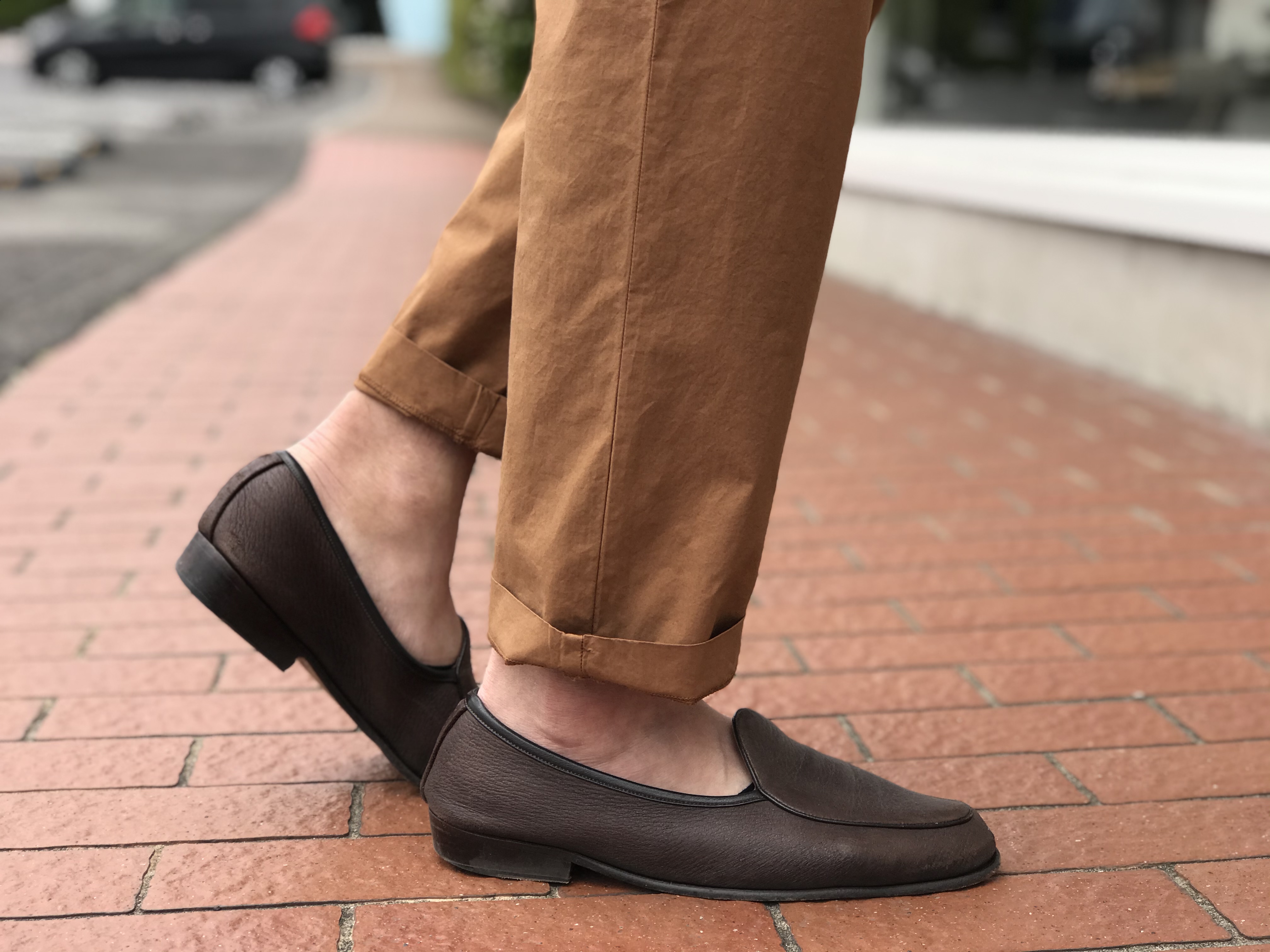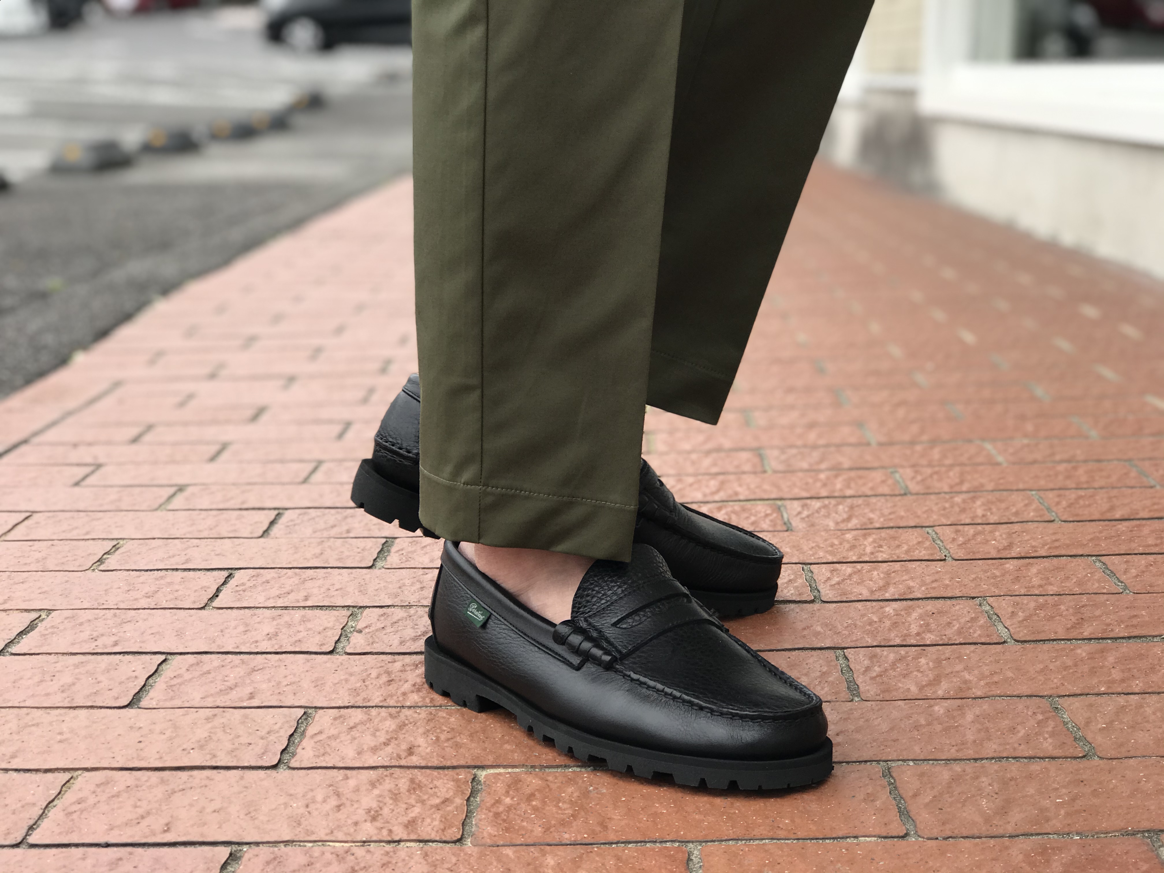 普段着として考えれば、こんなスタイルが良いでしょうか。PHIL PETTER(フィルペター)のカットソーにFumagalli(フマガリ)のネッカチーフを挿し、シューズはParaboot(パラブーツ)の新作コインローファーです。