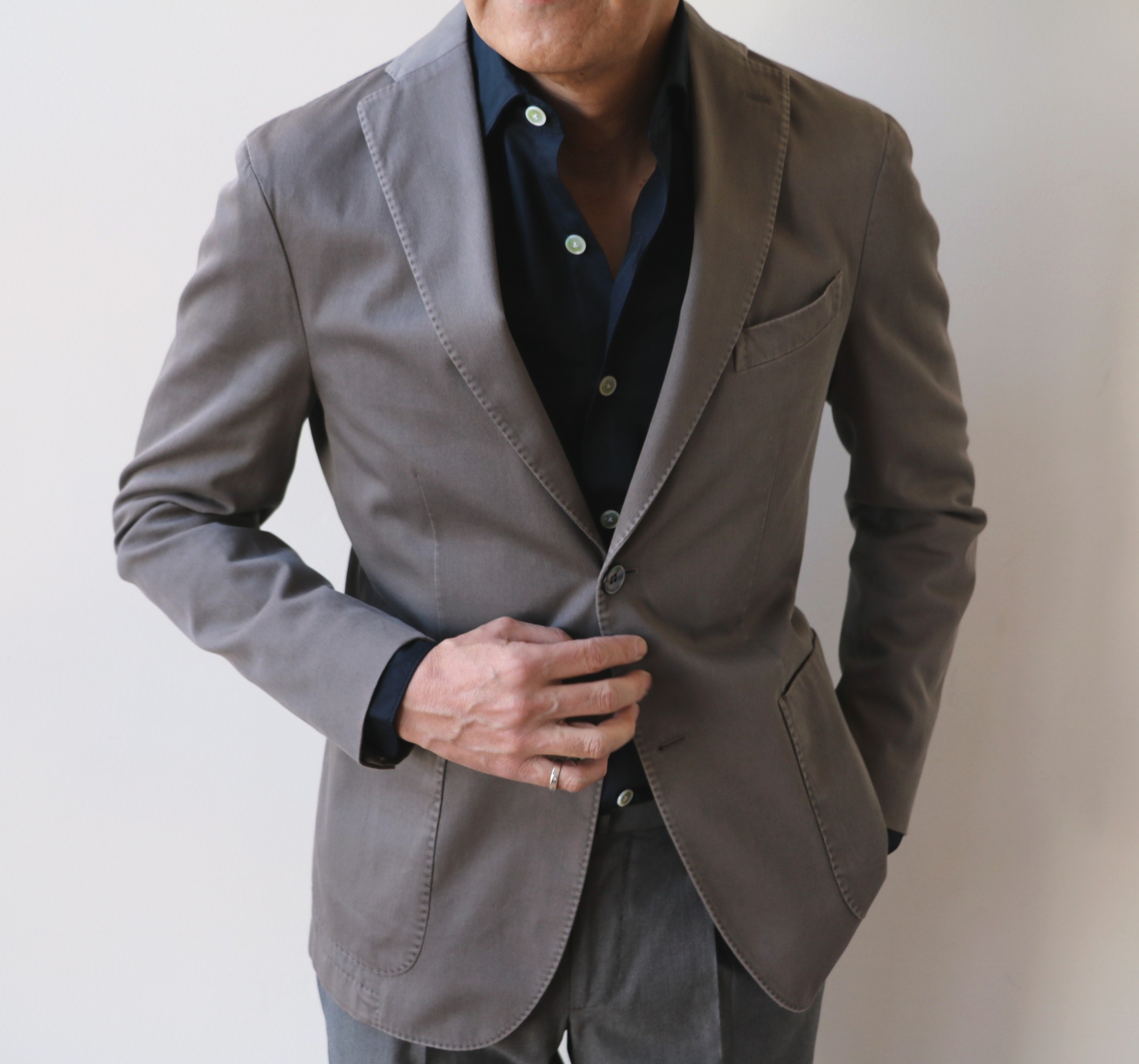ガーメントダイ(製品染め&製品洗い)加工のジャケットと言えば、BOGLIOLI(ボリオリ)。かつて「COAT」というモデル名でした。プロデュースは、現在、THE GIGI(ザ・ジジ)のピエルイジ・ボリオリ氏。素材は、コットンだけではありません。高級素材のカシミアをも製品が仕上がってから色を染め、最後に洗いをかけてしまう...なんて大胆な手法で多くの服好きを唸らせました。カシミアなどウール素材の場合は「K.JACKET」の名で分けていましたが、今は統一されています。