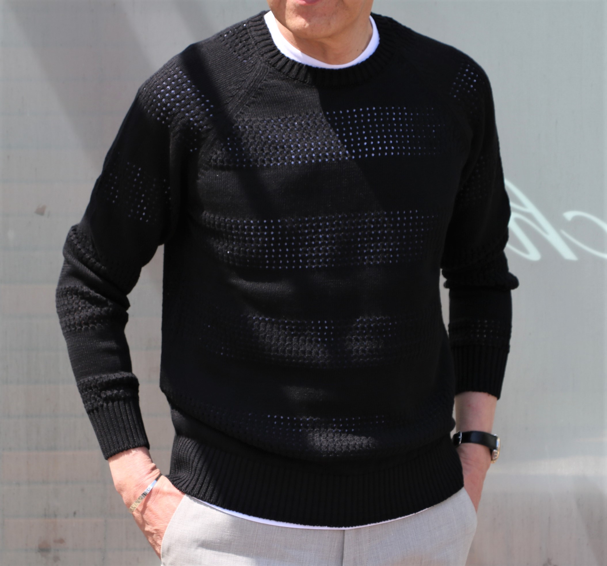 編地に変化をつけたリネン・コットンのサマーニットは、ラグランスリーブでさらに表情は豊かです。