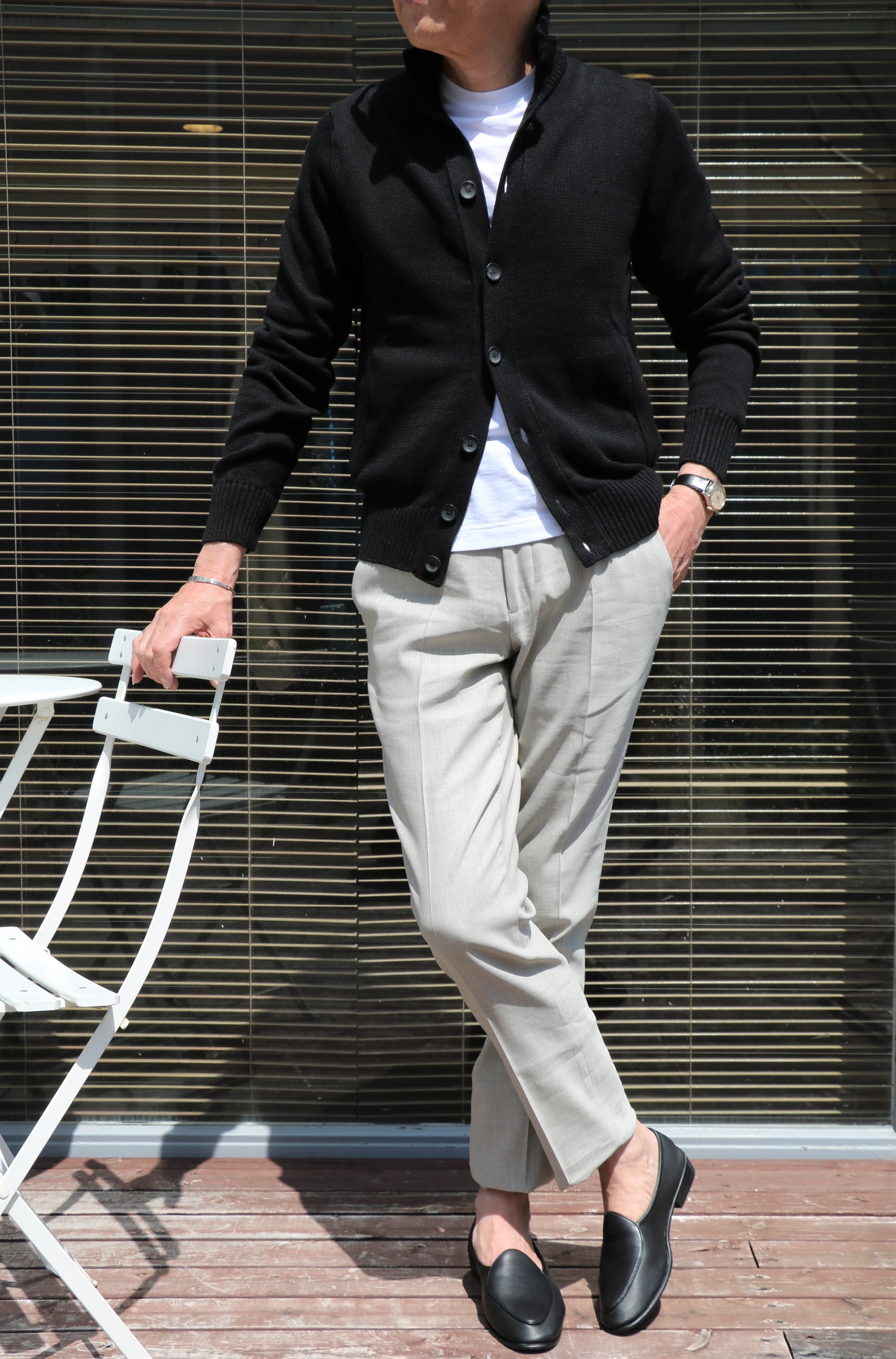 本日のご案内は、昨日に続き、【ZANONE/ザノーネ】。定番の立ち襟カーディガン「CHIOTO」の中に着たカットソーからご覧ください。