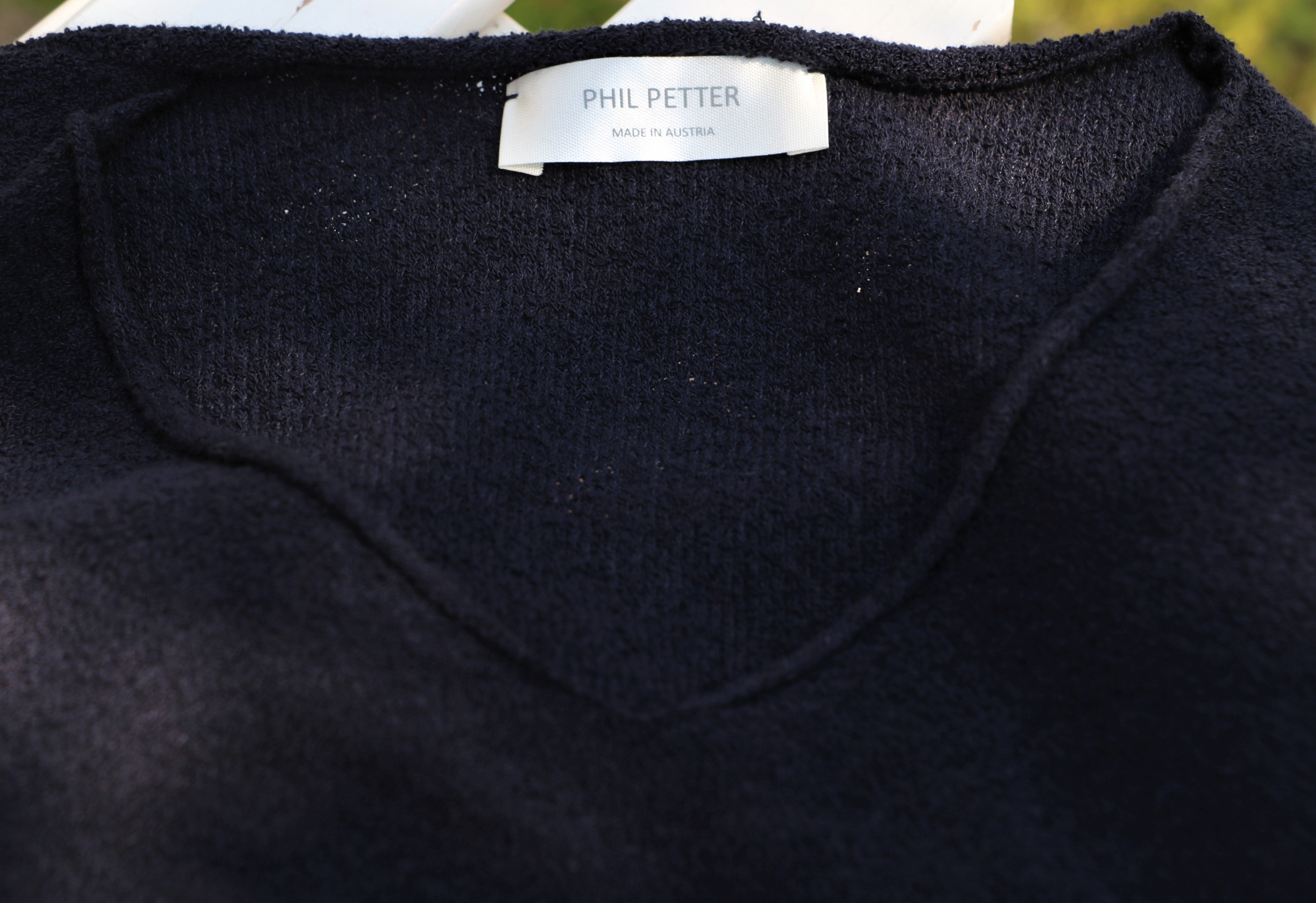 本日のご案内は、1973年にオーストリアのドルンビルンという小さな町で創業したニットブランド【PHIL PETTER/フィル ペター】。古くからフランス、ドイツ、イギリス、イタリアのニットの生産地として名高いオーストリア。創業者のKurt Pette氏のこだわりのもと、全ての商品を自社工場で生産しています。特筆すべきことは、素材への探求心。既に体感され納得された方も多いドイツのビスコースストレッチ糸を使ったTシャツもその一つ。日本ではまだまだ知名度の低いブランドですが、世界では極めて高い評価を受けています。
