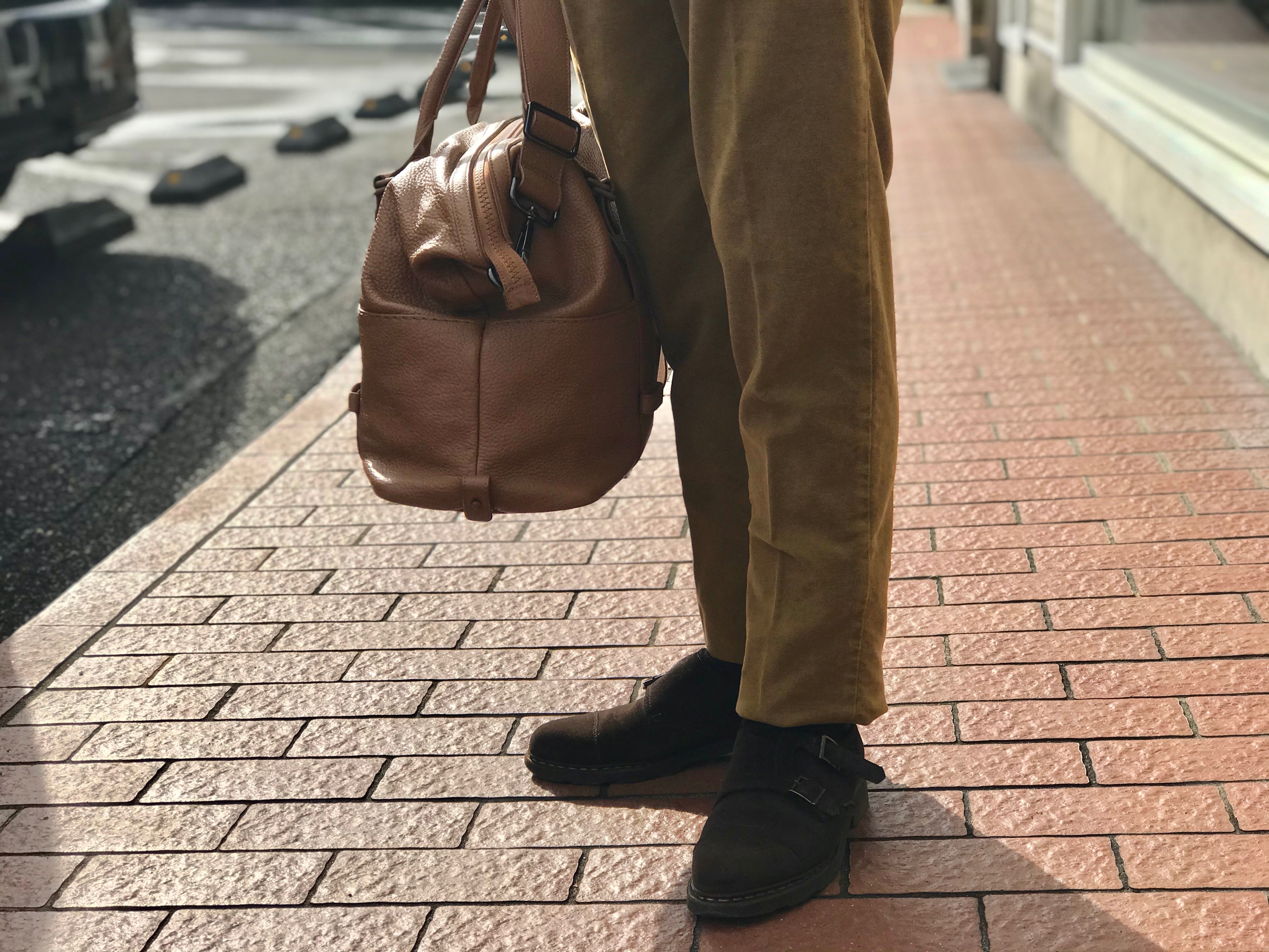 バッグとシューズも同色系で、ZANELLATOのバッグは明るい色でアクセントにし、濃色で全体を引き締めるのは、本日ちょうど履いていたParabootのスエードシューズ。