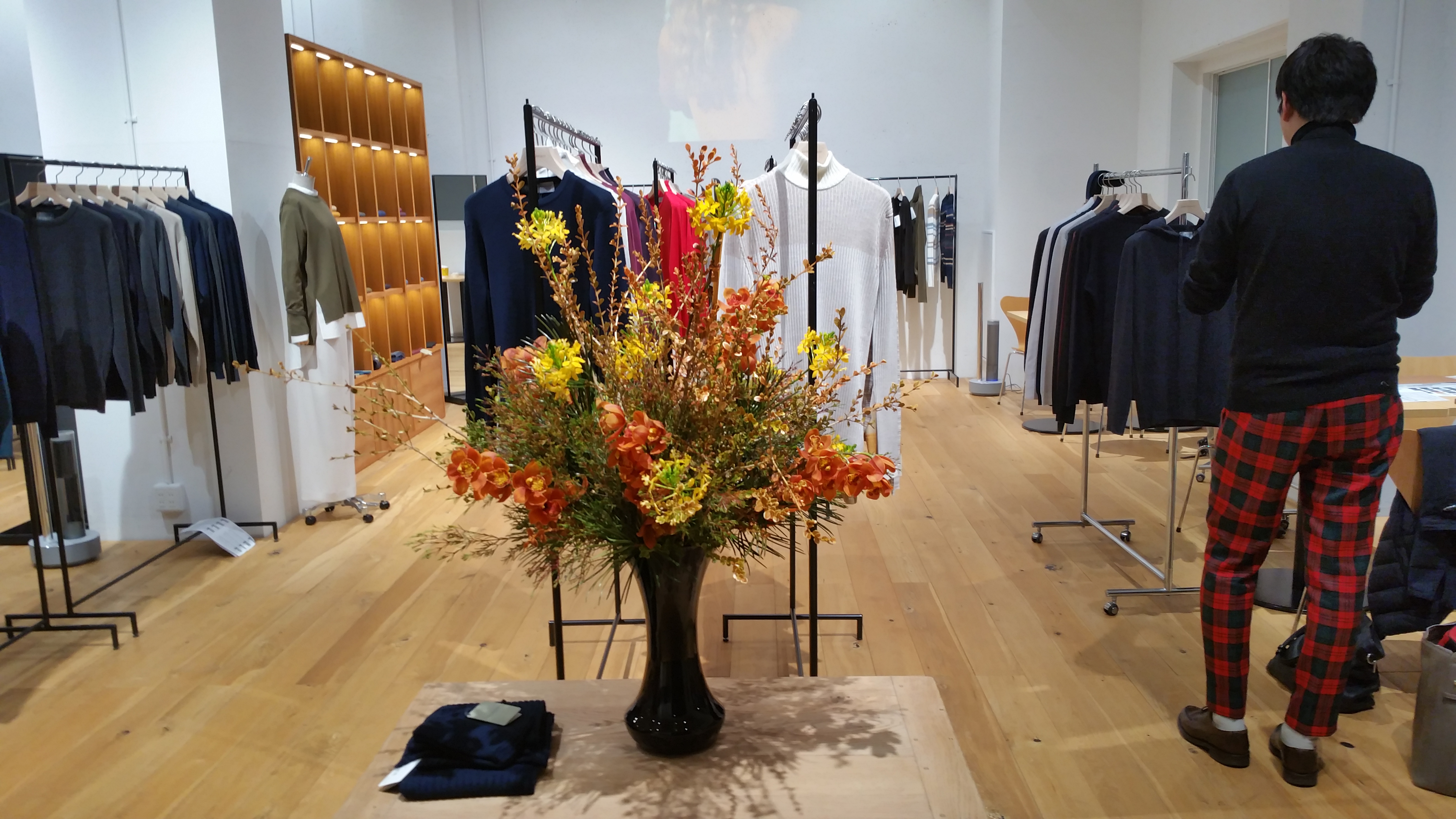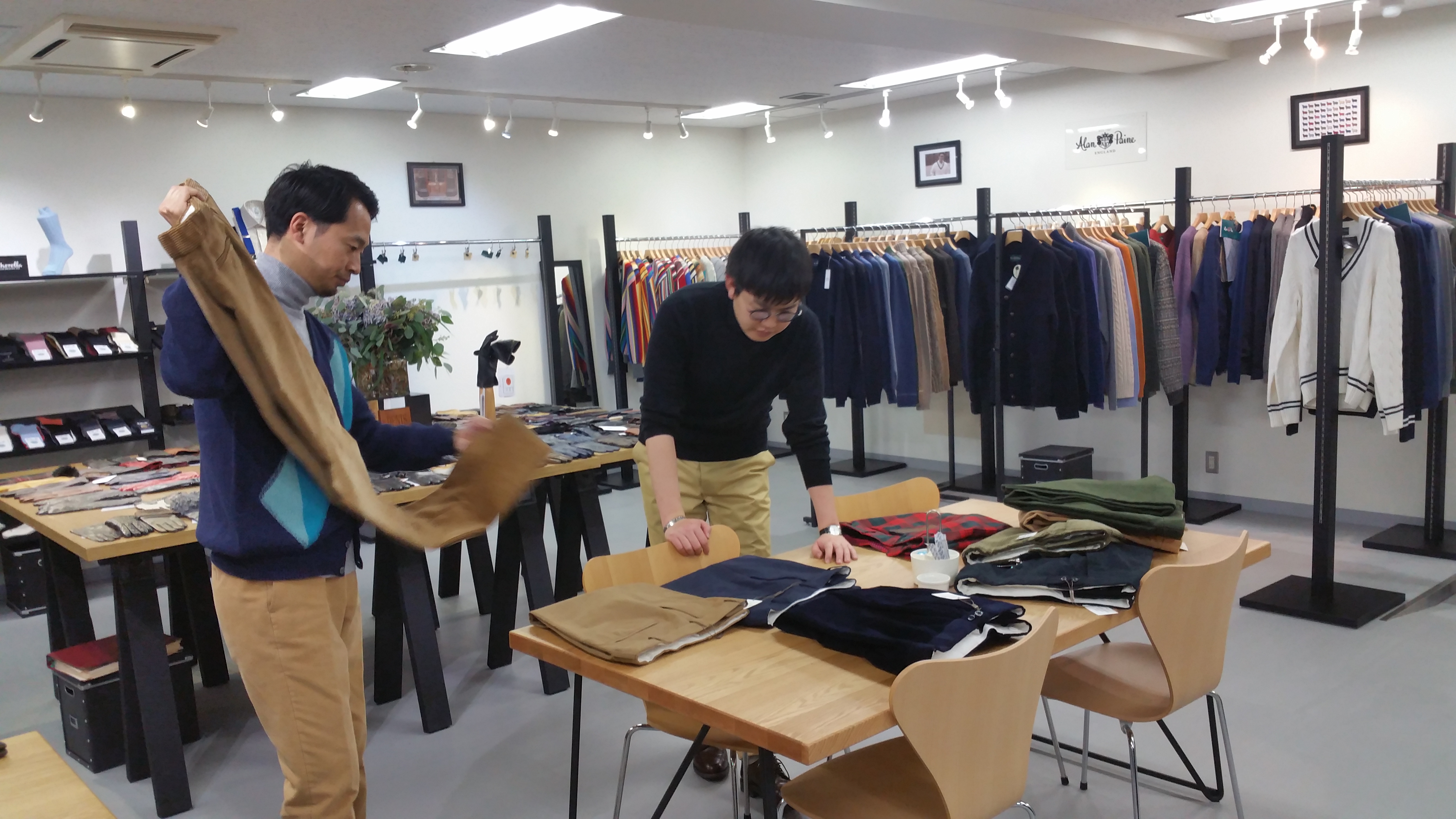 この日のバイイングは、MooRER(ムーレー)とJACOB COHEN(ヤコブ コーエン)を除き、昨年秋よりカシェート内にできたコンセプトショップのセレクト。私よりジュニアの方が真剣です。ただ写真一番下のJOHN SMEDLEY(ジョンスメドレー)は共通の為、意見も分かれます。新しい提案に関しては、やはり若いジュニアの柔軟な目利きに委ねることにしましょう。