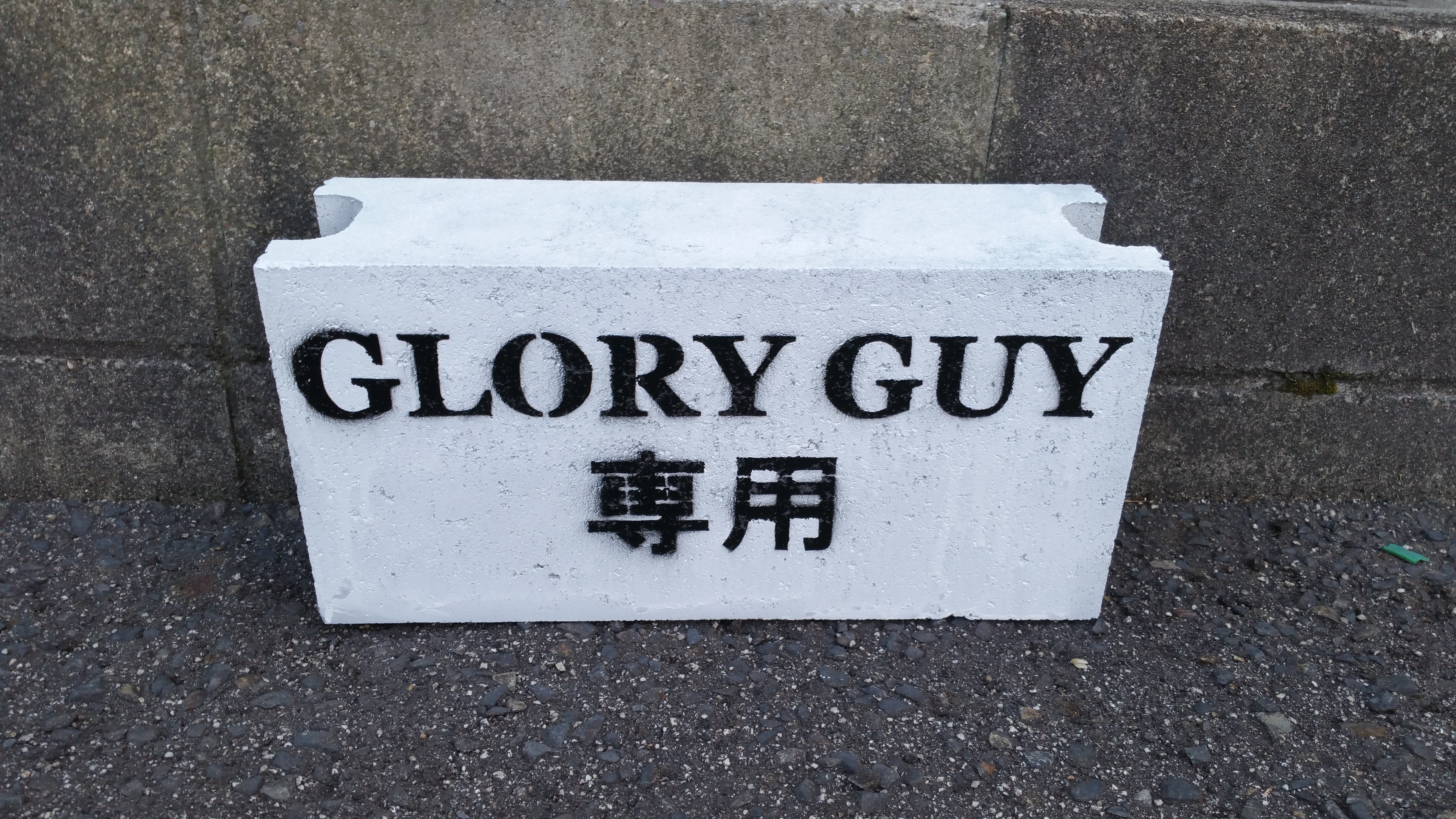 「GLORY GUY 専用」と白いブロックが置いてありますので、目印としてください。この駐車スペースはバックで進入していただくと、停めやすいかと思います。