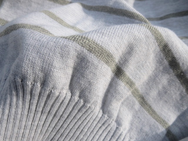 30ゲージの、もちろんシーアイランドコットン(海島綿)。16世紀、その優雅な感触と品位ある光沢で、英国女王の心を虜にして以来、英国王室や貴族たちを魅了し、英国紳士たちの間で、ステイタスシンボルとし て愛され続けてきた、宝石のようなコットンです。家庭での洗濯(裏返して洗濯ネット、中性洗剤使用)可能と手軽さも魅力の一つ。個人的にも、10年以上愛用しているニットがいくつかあり、今年も出番を待っています。