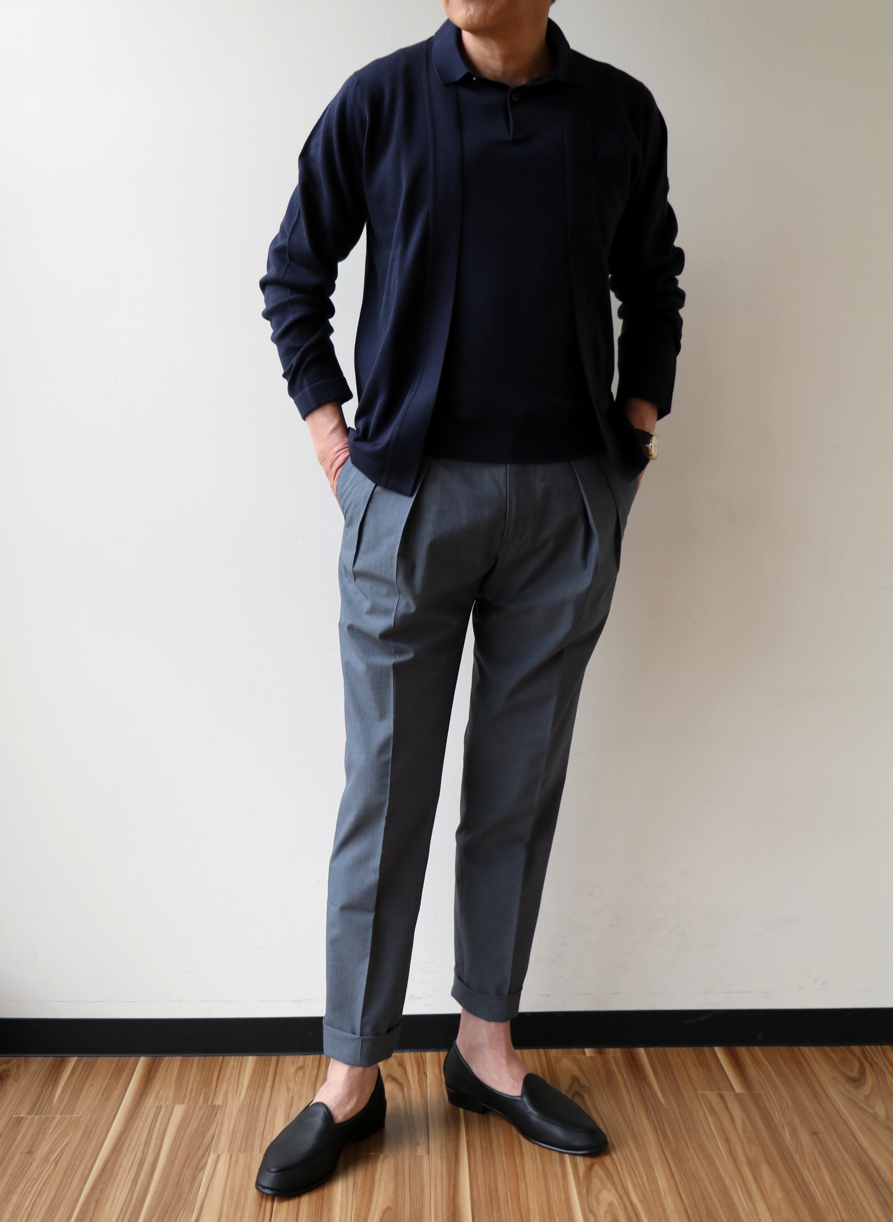 ネイビーは、ツインニットでのご提案です。どうやら、このINCOTEX(インコテックス)のパンツが気に入ったようです。予定していたパンツを止めて、またまた穿いてしまいました。