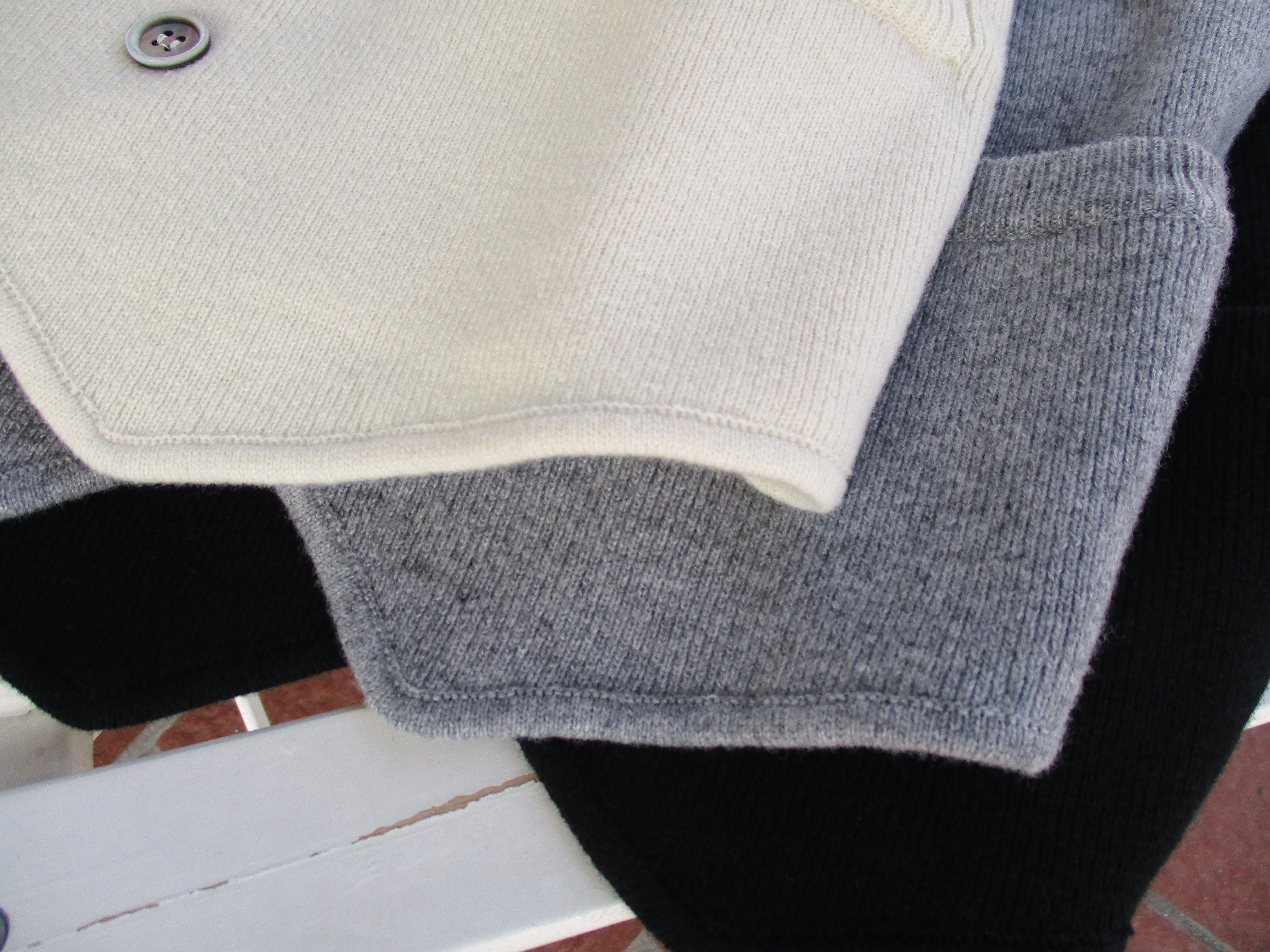 今回、ウール・カシミア素材で3色。オフホワイト、ライトグレイ、ブラックをご用意しました。