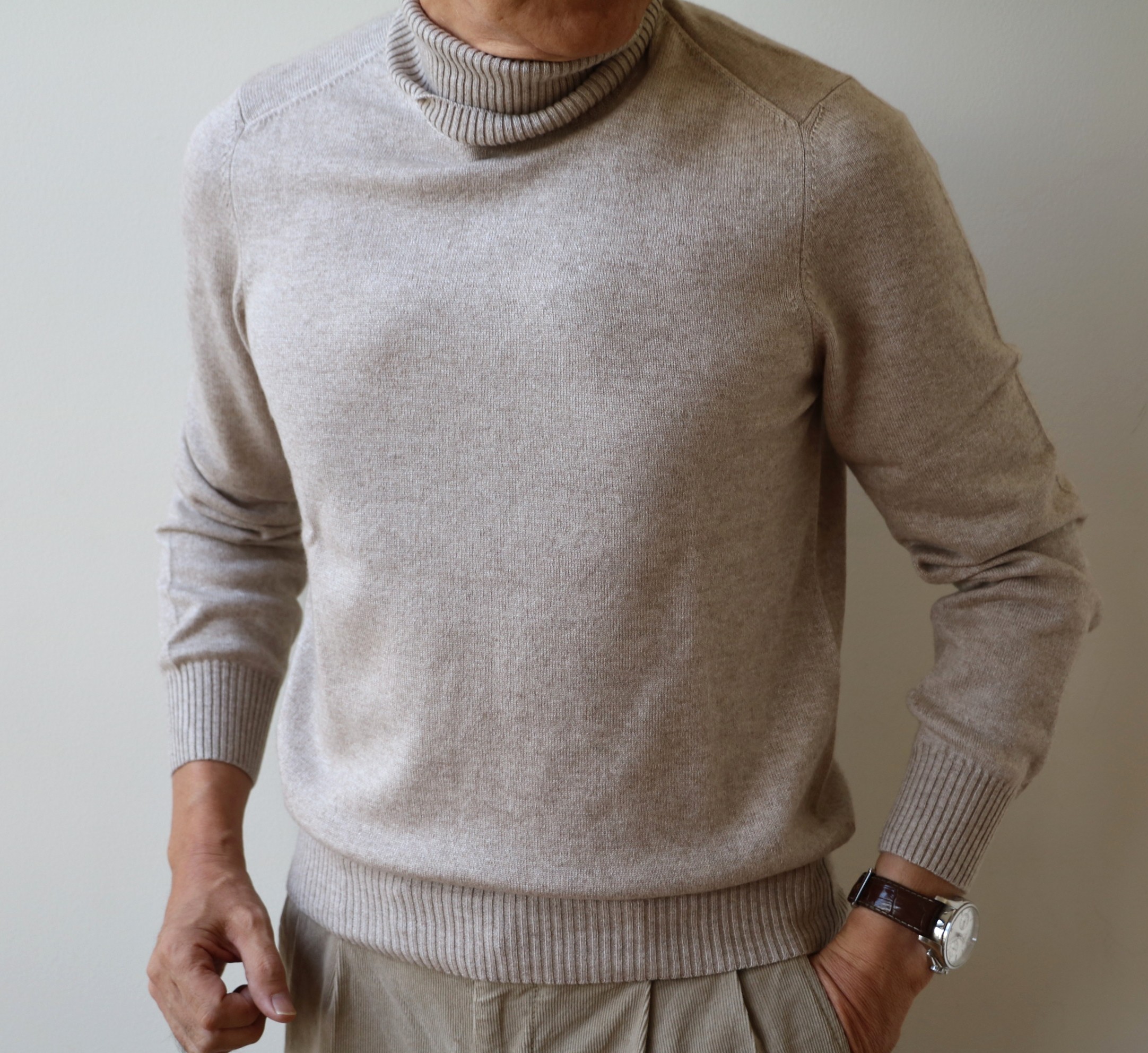 昨年は、なんと8月20日の暑い最中にご案内させていただいたカシミア・シルクのタートルネックセーター。この2ヶ月の差は何なんでしょうね。今季、ベージュが少し遅れたせいで、ご案内が遅くなり、いや丁度良いタイミングとなりました。【Settefili Cashmere/セッテフィーリ カシミア】の素材を楽しむ為に、毎年、1.2枚ずつ購入している私スグル。昨年、購入し大活躍したのが、こちらのニットでした。