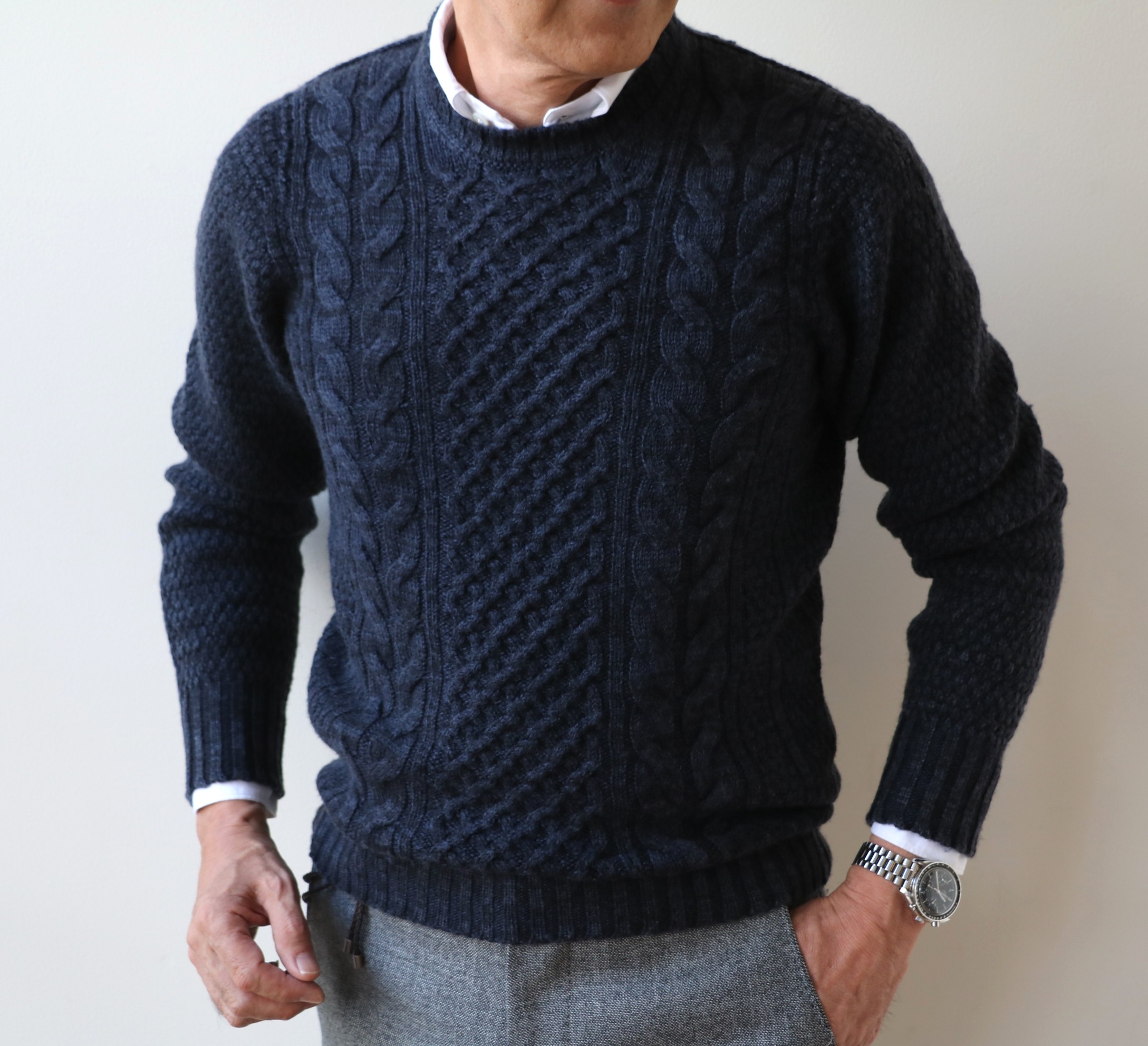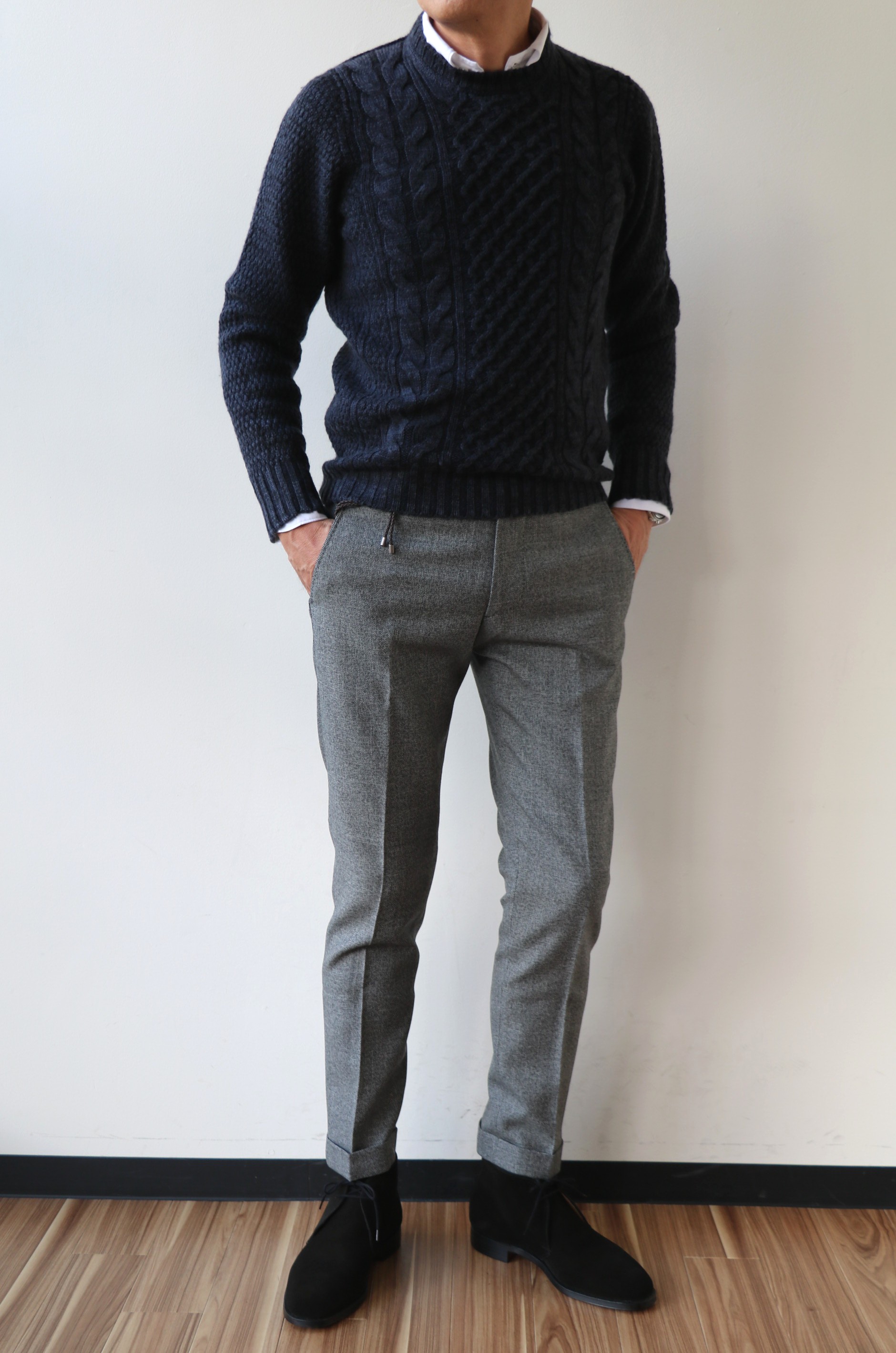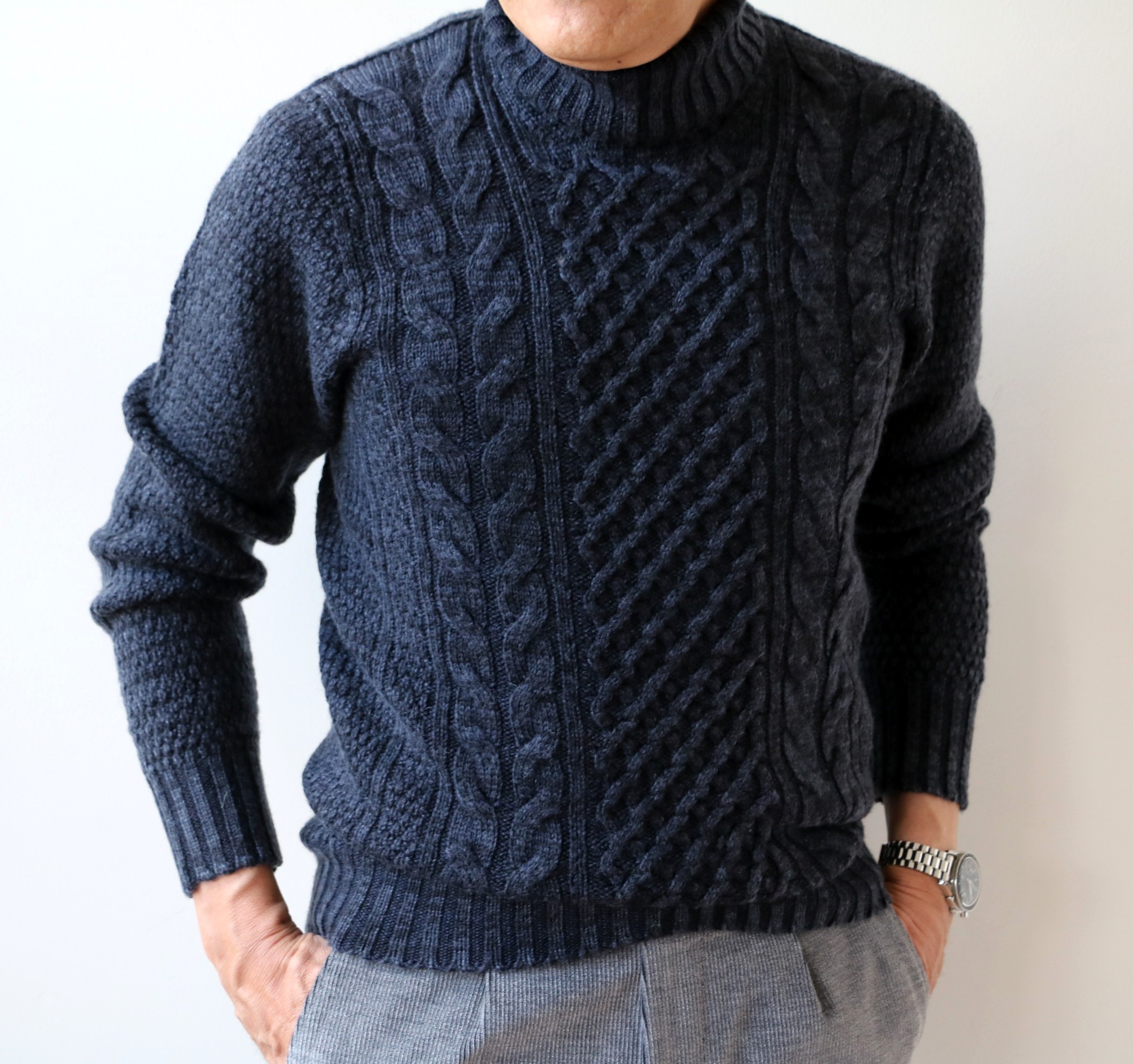 MODEL: 新柄ケーブル編ラウンドネックセーター
