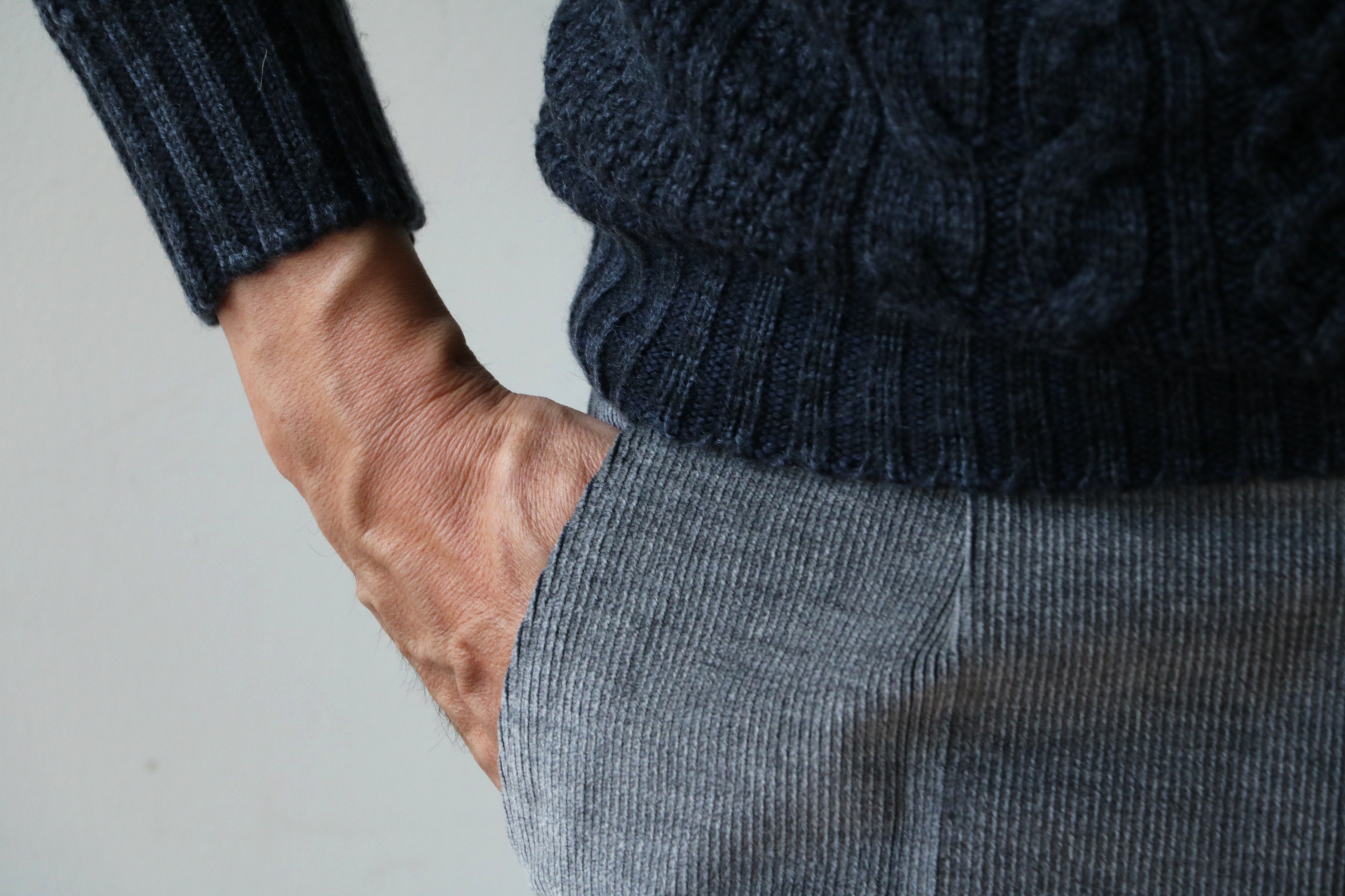 そのため、温かさや耐久性の高さは言わずもがな、厚みのある生地が生み出す編地がカジュアルな表情を作り出してくれるので、"もったいなくて...いつ着たら..."と言う方でも、普段使いしやすい"お上品"にならないカシミヤウェアです。