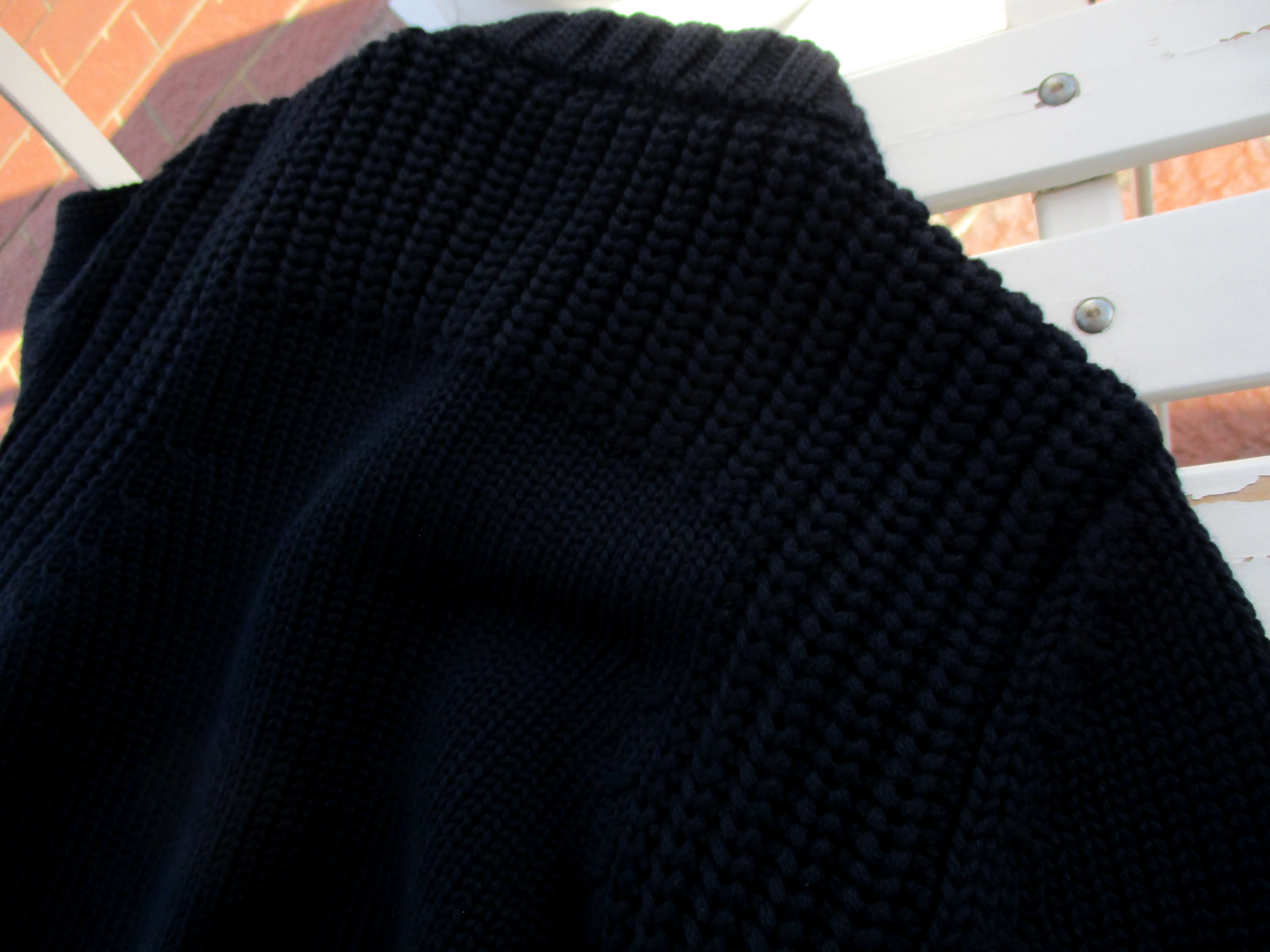 展示会で見た際、頭に浮かんだのが、"ガンジーセーター"。イギリスとフランスの間に浮かぶ「ガーンジー島」。近くにジャージの起源でもある「ジャージー島」もあります。もともと、極寒の海上で働くフィッシャーマンの為に編まれていた作業着。密に編まれた天竺編みの丈夫なハイネックのプルオーバーのことです。もちろん、このニットはガンジー生まれではありませんが、第一印象の"ガンジーセーター"の名称で呼ばせていただこうかと思います。