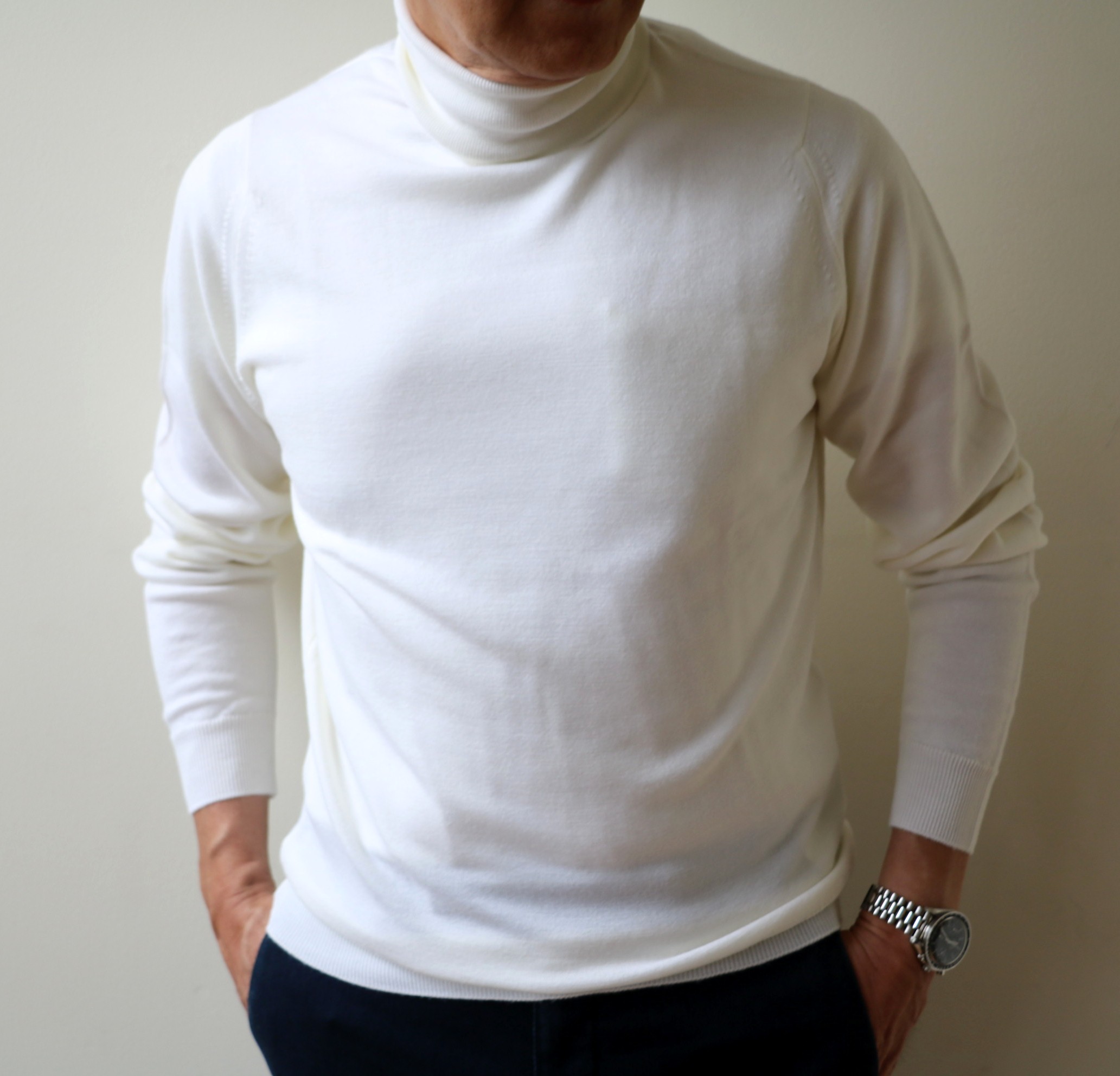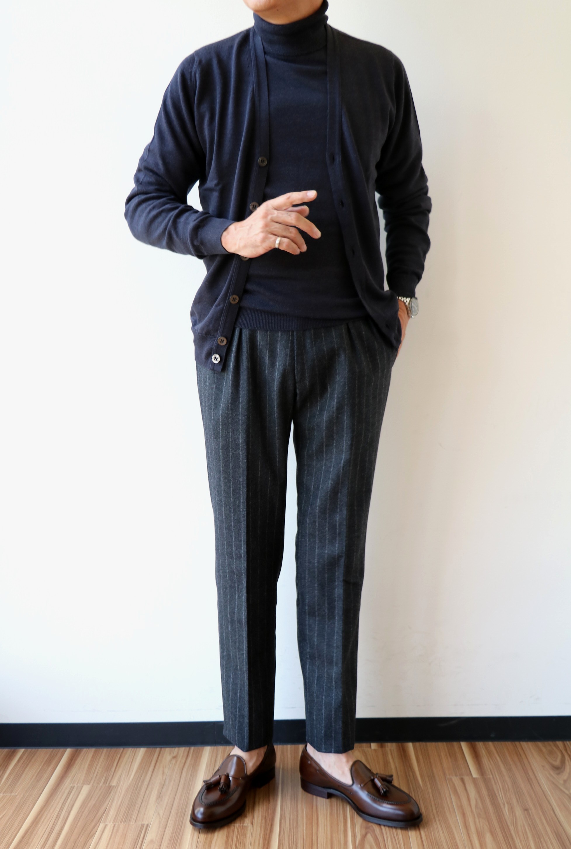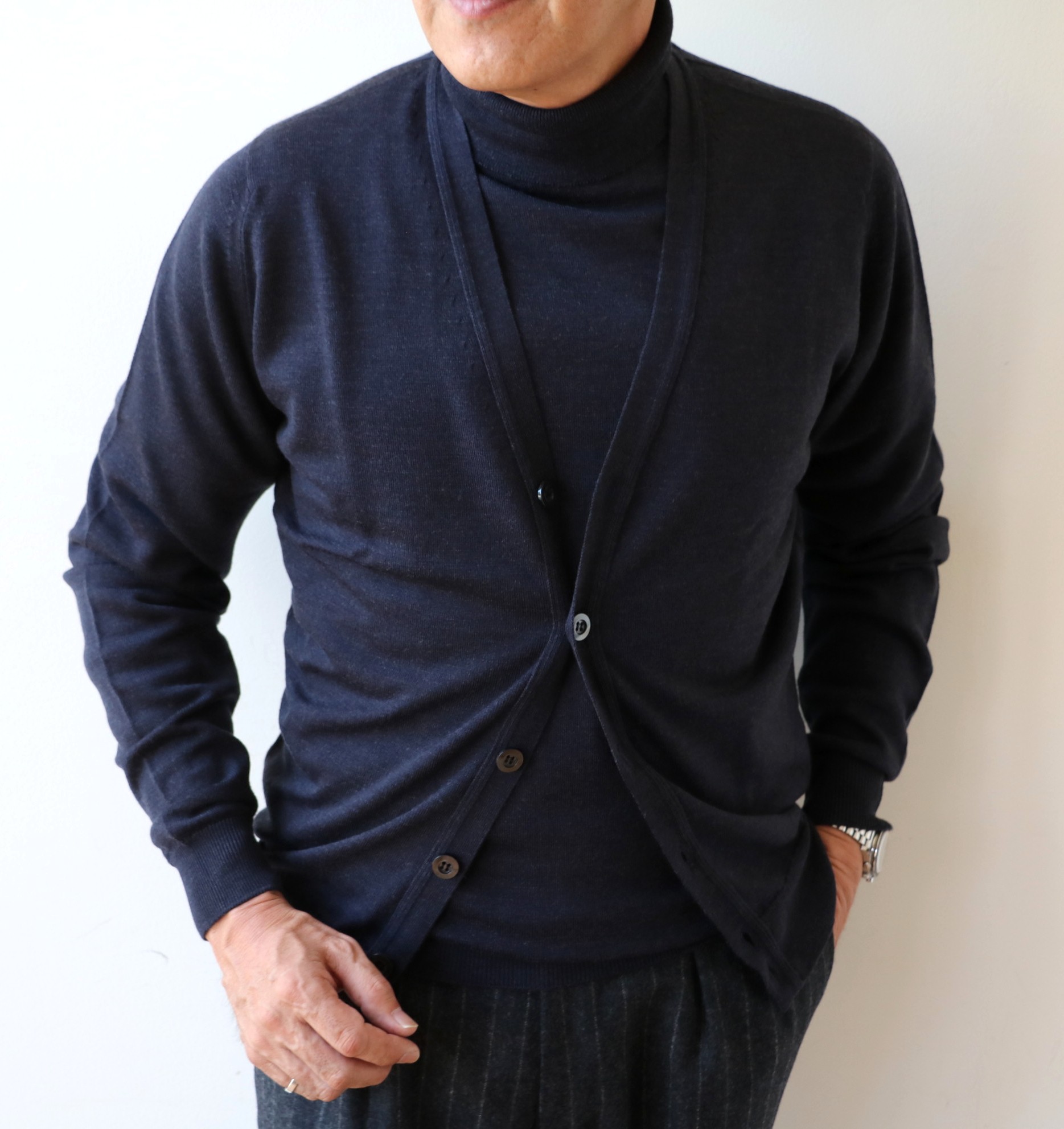 そして、本日のご案内は、De Petrillo(デ ペトリロ)のジャケットに合わせていたニット【JOHN SMEDLEY/ジョン・スメドレー】をお届けします。9月9日分と併せて、ご覧ください。