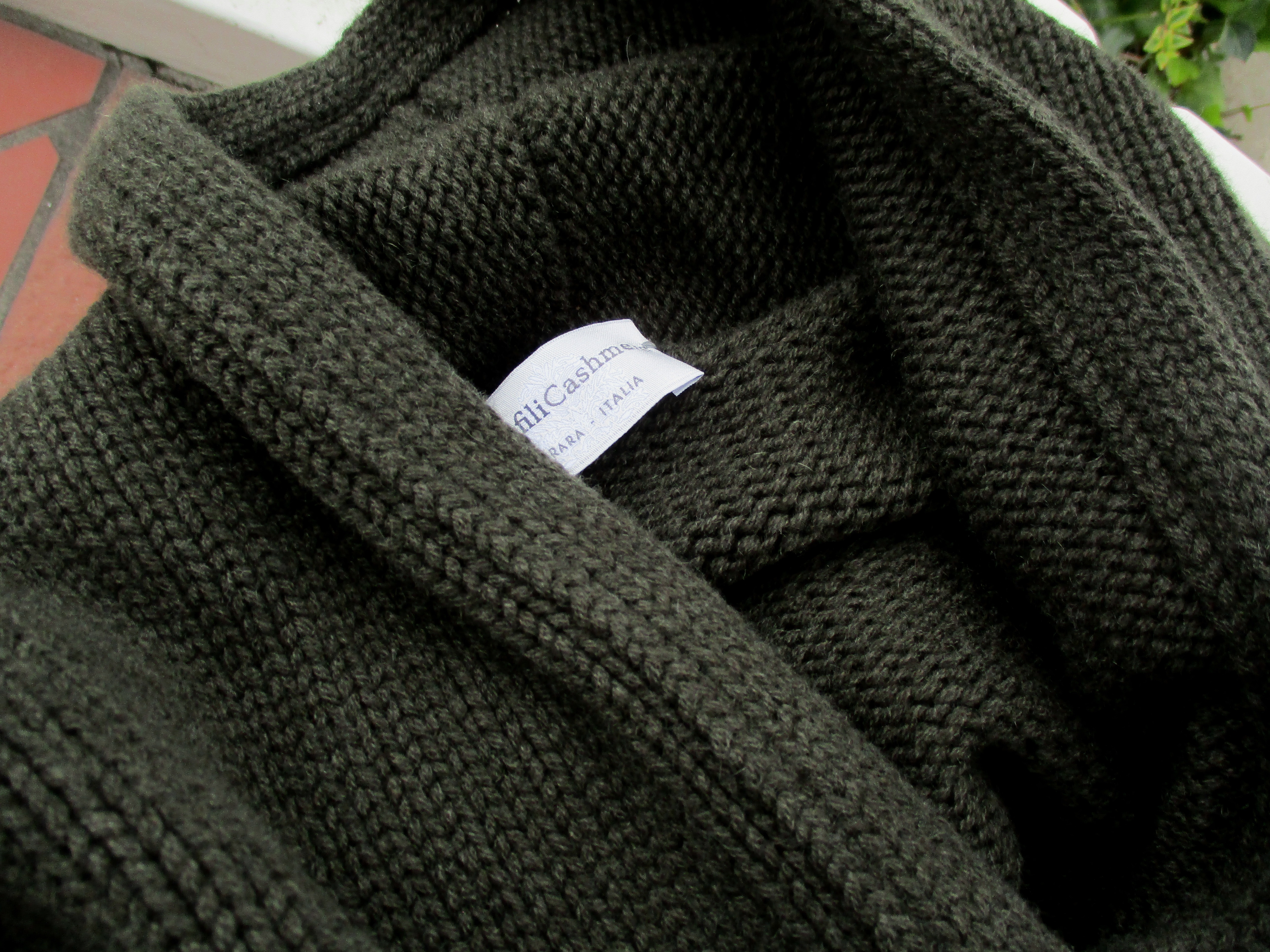 セレクトカラーは、ダークオリーブのみ。カシミアならではの深みのある色合いと質感に、何か他を諦めることを考えてしまうほど、魅惑的です。私の場合、飲みに行くことを諦めれば、手に入れることができる...はずです。