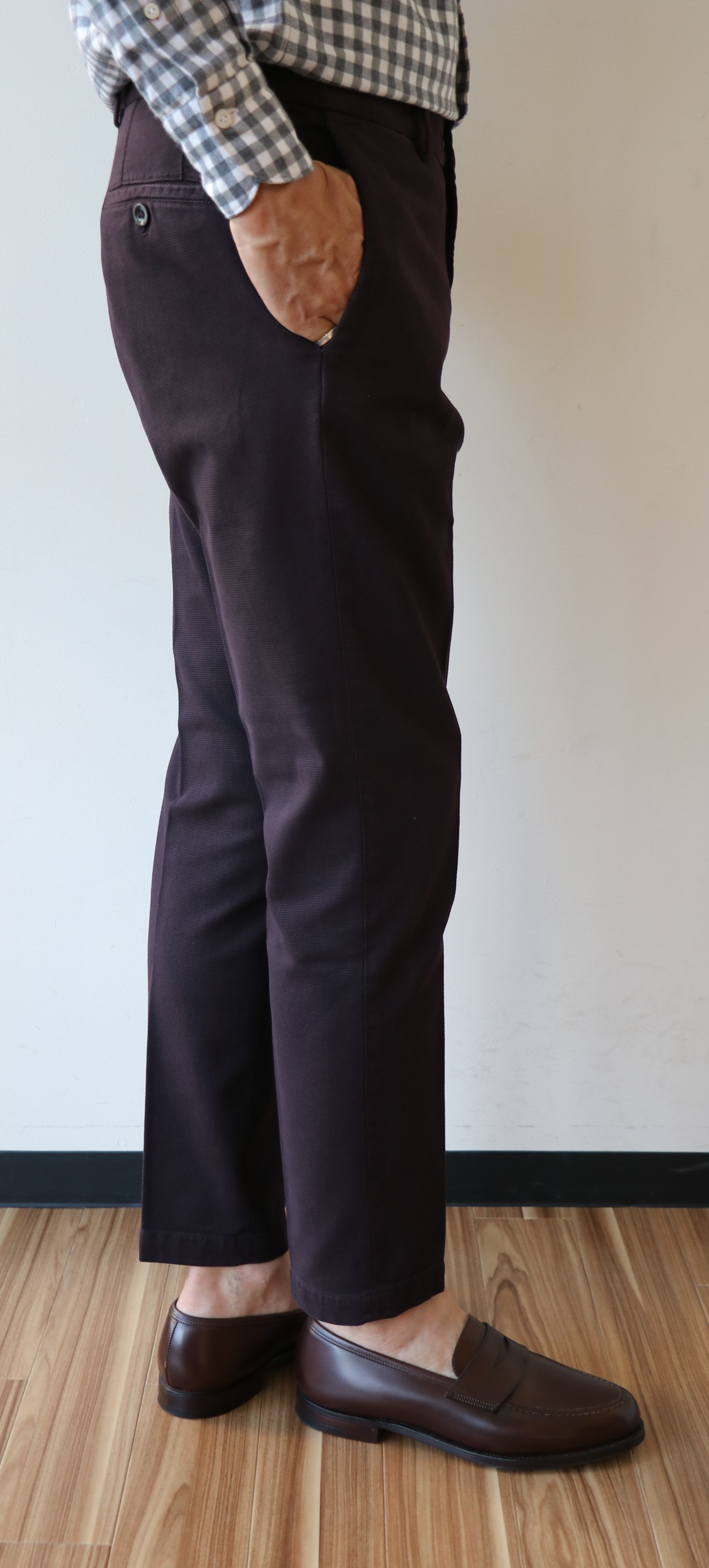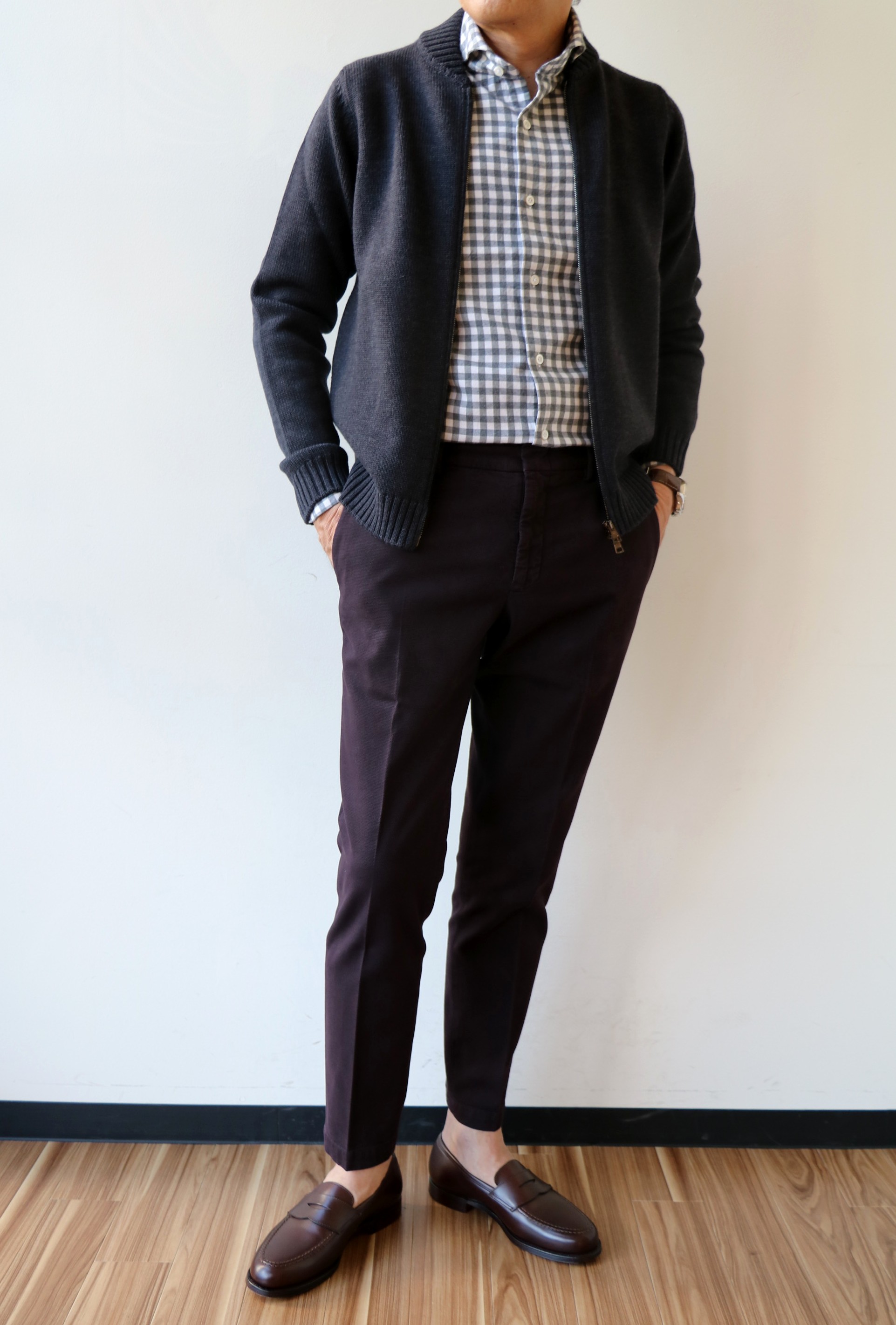 また合わせているパンツは、全て【Borelio/ボレリオ】。あまりの穿き易さから、撮影用としてネイビーとブラックの46を抑えさせていただきました。お問合せの多い中、ご提案できるのは、ネイビーの46だけとなってしまいましたが、暫くお待ちください。現在、追加要望を出しており、早ければ、9月末ぐらいには再入荷となる見込みです。ただ、今後、続々とパンツが入荷してきます。そちらもご期待ください。