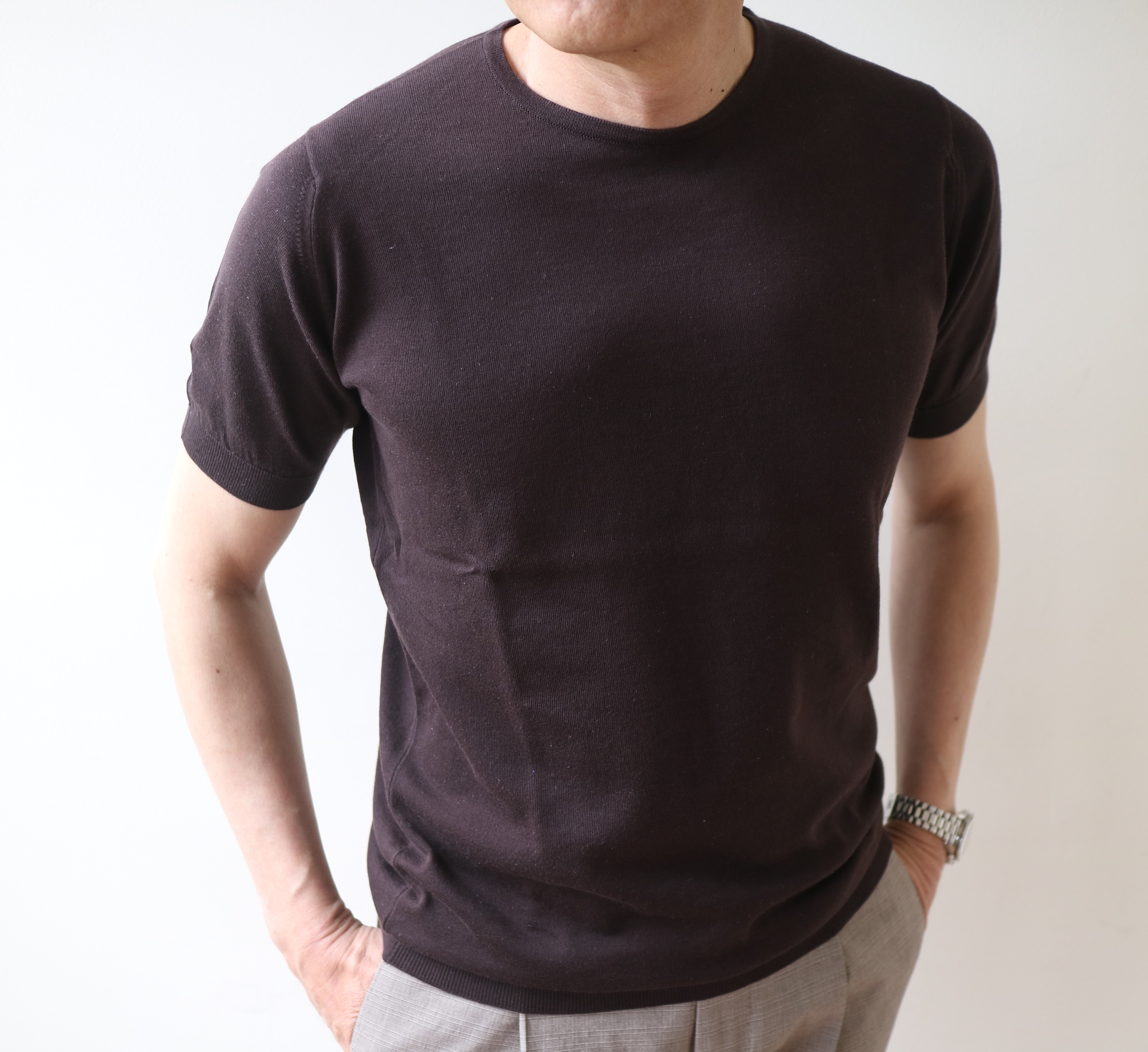 MODEL:「BELDEN」 30G ショートスリーブラウンドネックニット