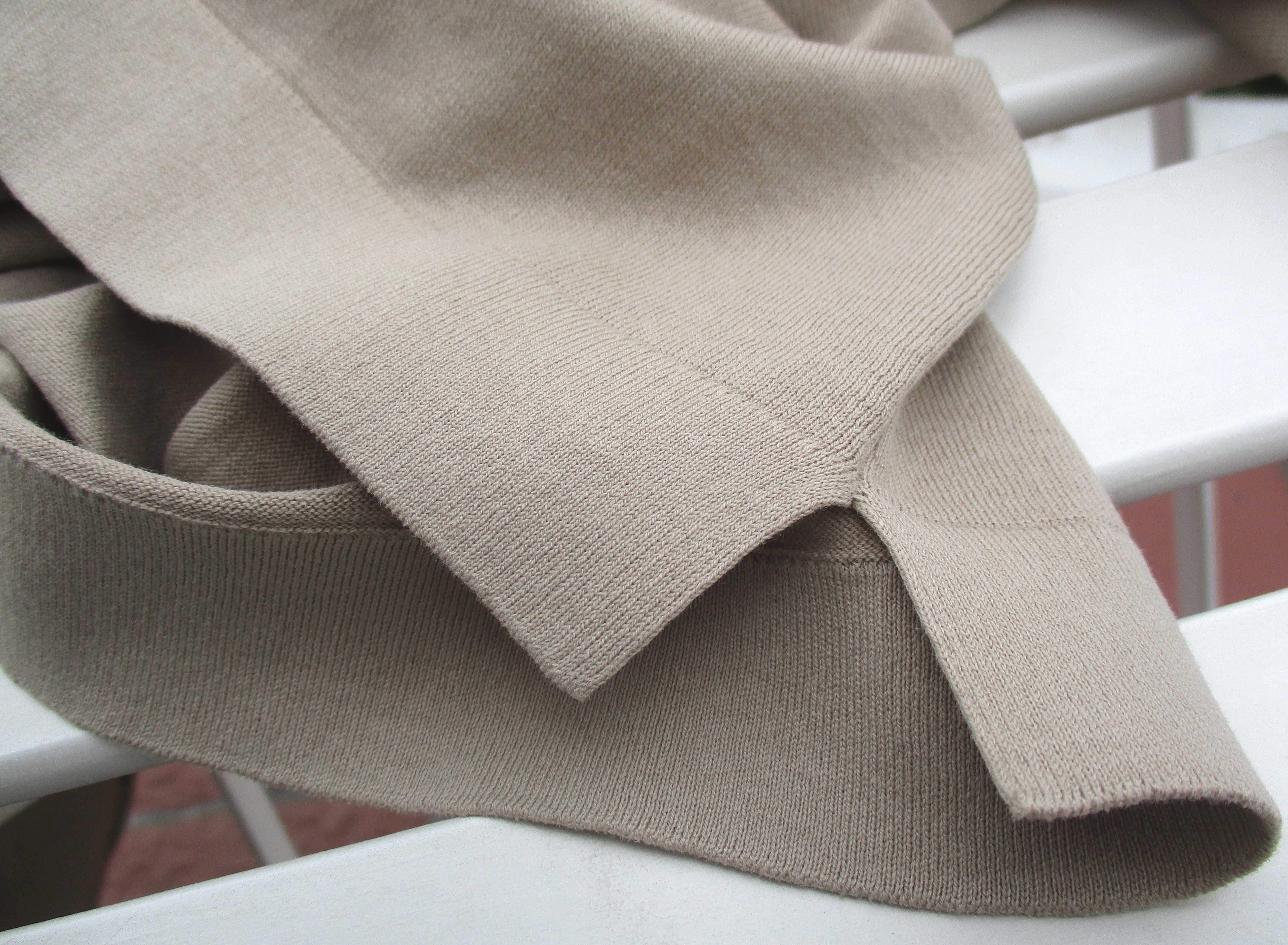 裾は、ニット特有のリブ編みではなく、カットソーのようなタタキ仕上げになっていて、ラグジュアリーな雰囲気に加え、スポーティーさも併せ持ちます。