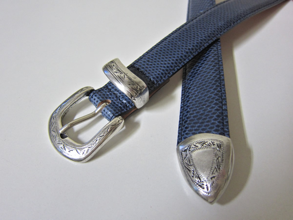 ウエスタン調に施した彫刻や、プンターレもインパクト十分。そして、水蛇の革が醸し出す雰囲気は、爬虫類系の革にありがちなエキゾチック感や、派手ないやらしさがありません。クロコやイグアナとは、また違った良さが、水蛇の革にはありました。