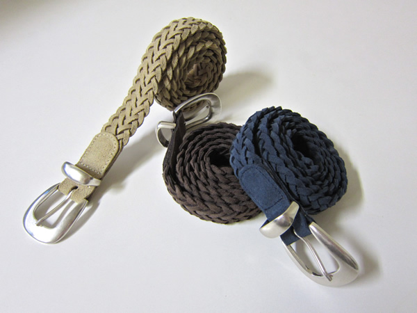 メtシュベルト(イントレチャート)は、やはり細い巾でセレクト。サンプルのブラウンとブラックの2色です。コットンやリネンパンツ、そしてホワイトデニムとの相性は抜群です(15.750円)。