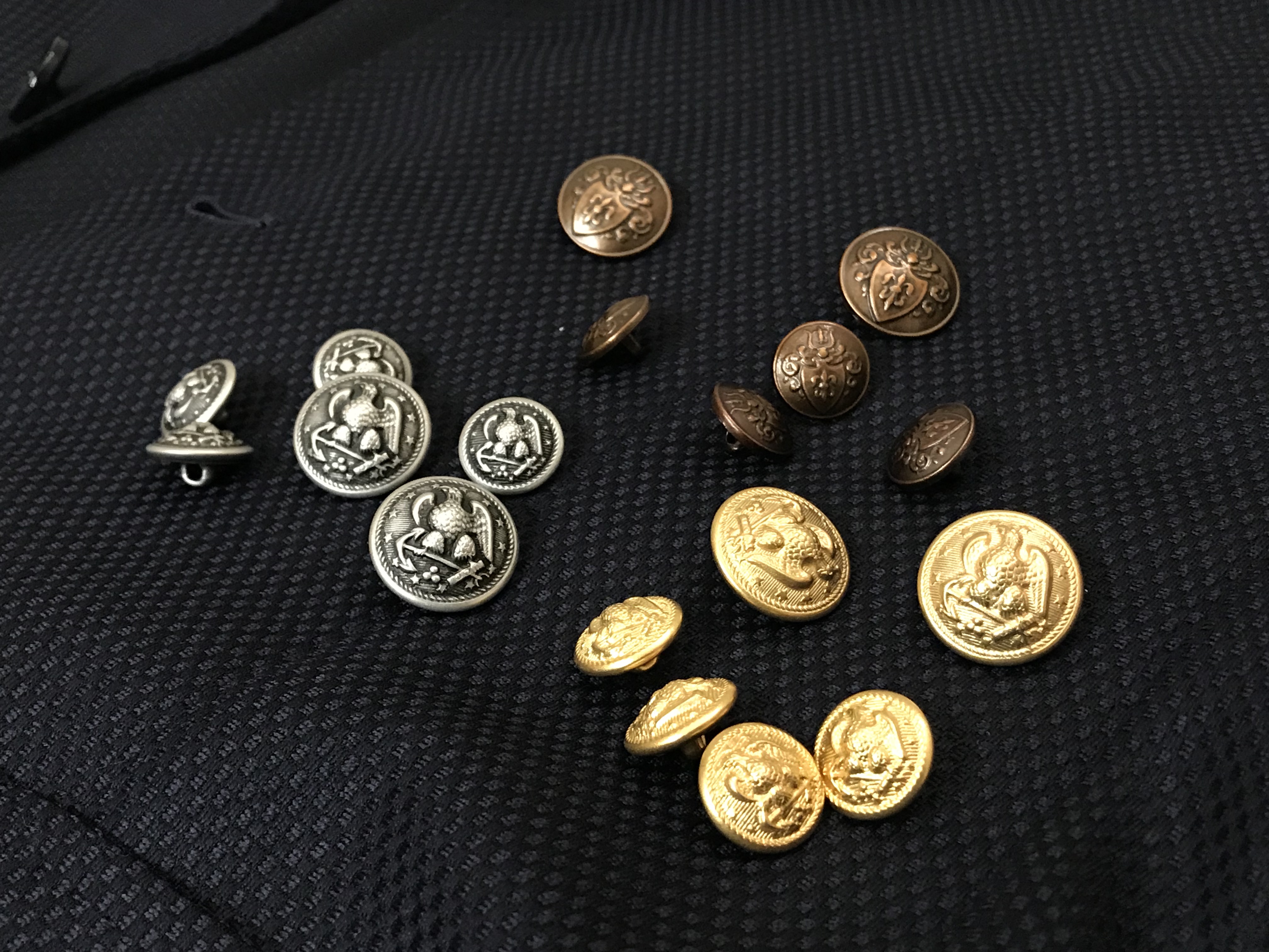 このイベントのメインとなる【TAGLIATORE/タリアトーレ】では、期間中にジャケット(スーツ、コート)をお買い上げ頂いた方に、お好みの仕様にアレンジして頂けるよう、ゴールド・シルバー・ブロンズのメタル釦への付け替えサービスを致します。(修理費用は別途有料)