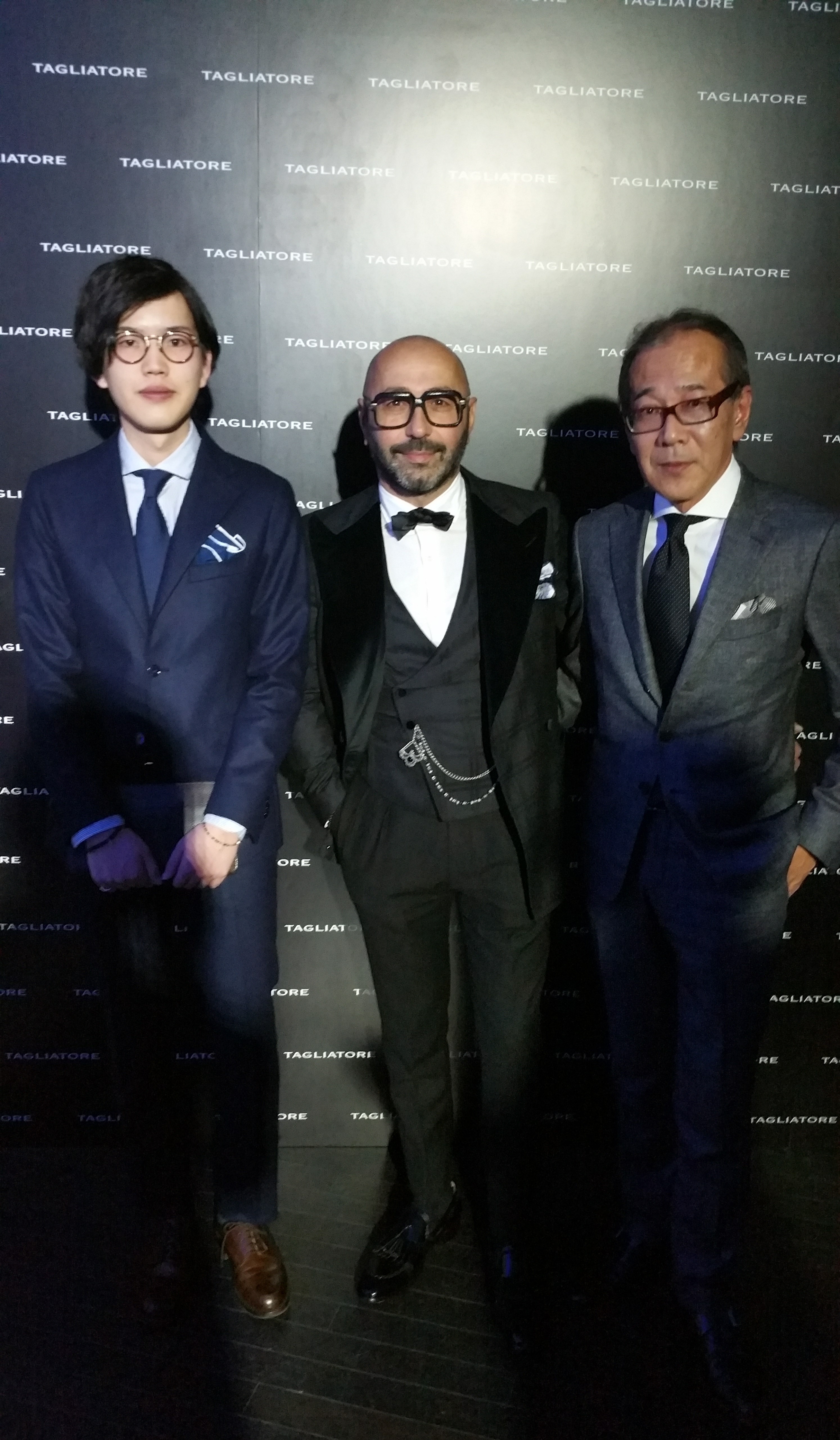 タリアトーレのパーティーの際、一緒に撮った写真です。私の身長が175cm、ジュニアは181cm、ピーノ氏は? でもスナップ写真などでみる彼は大きく見えます。数センチの、いや数ミリの拘りが見え方を大きく変えます。着やすさも、もちろん大切ですが、見え方も重要な服選びのポイントですね。