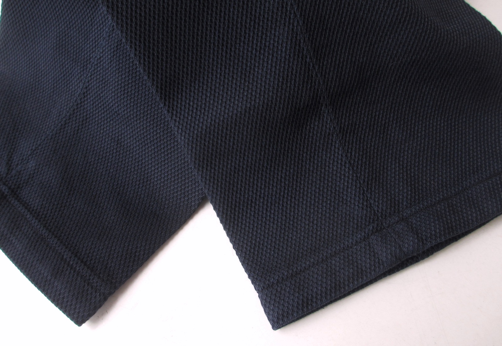 置き撮りは、なんとかネイビー色が出てくれました。凹凸感のあるコットン100%の織り地が、ガーメントダイ加工によって雰囲気のある表情を作り出しています。以前のように無理な加工はなく、自然な風合いを楽しんでいただけるはずです。