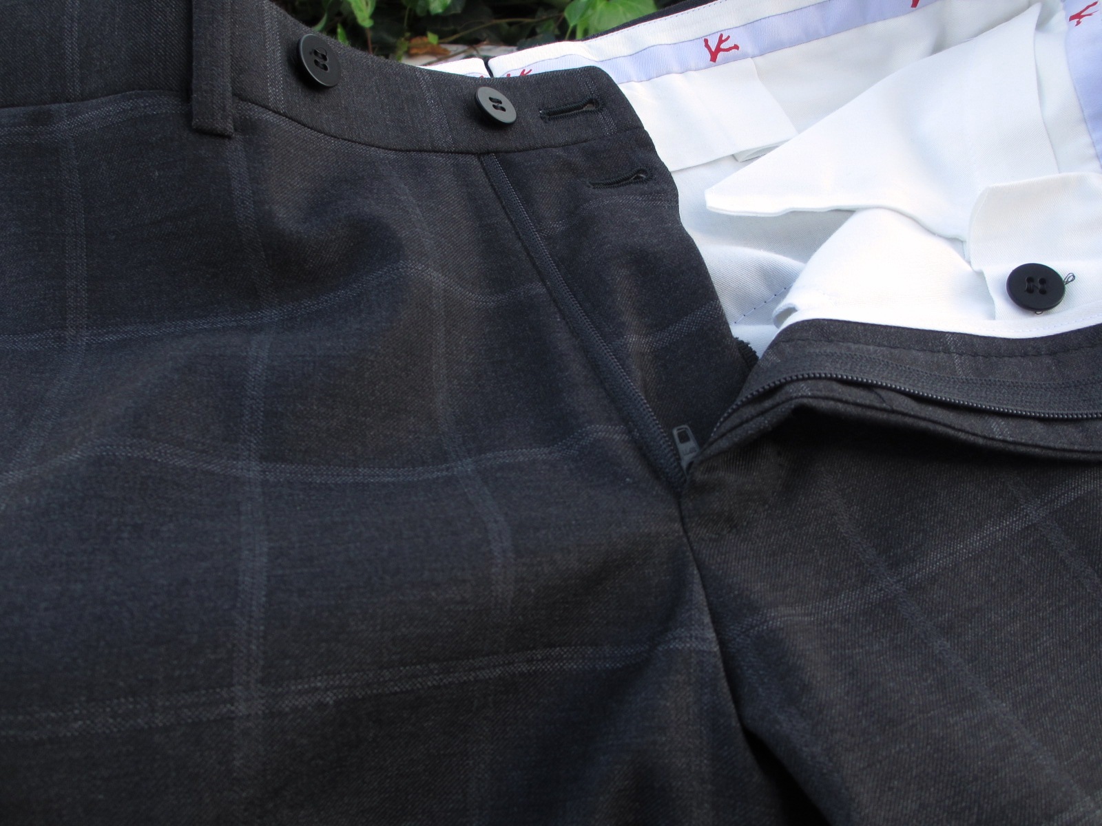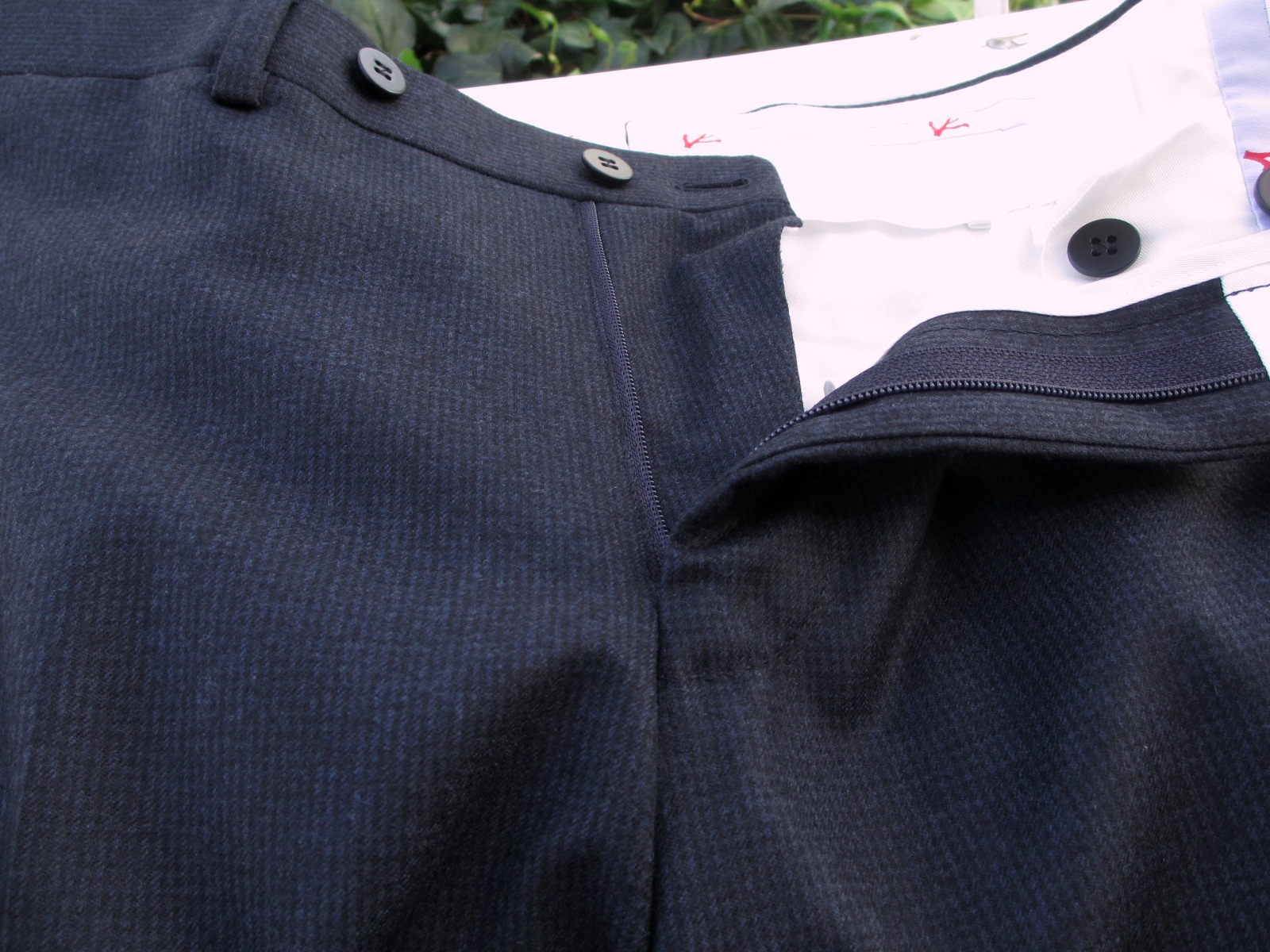 毛羽のないウール100%のハウンドトゥース柄。その表情は、モーニングやディレクタースーツのコールズボンを連想していただくと分かりやすいかと思います。元グッチのフォーマルウェアの責任者として活躍されていただけに、彼ならではの生地チョイスです。