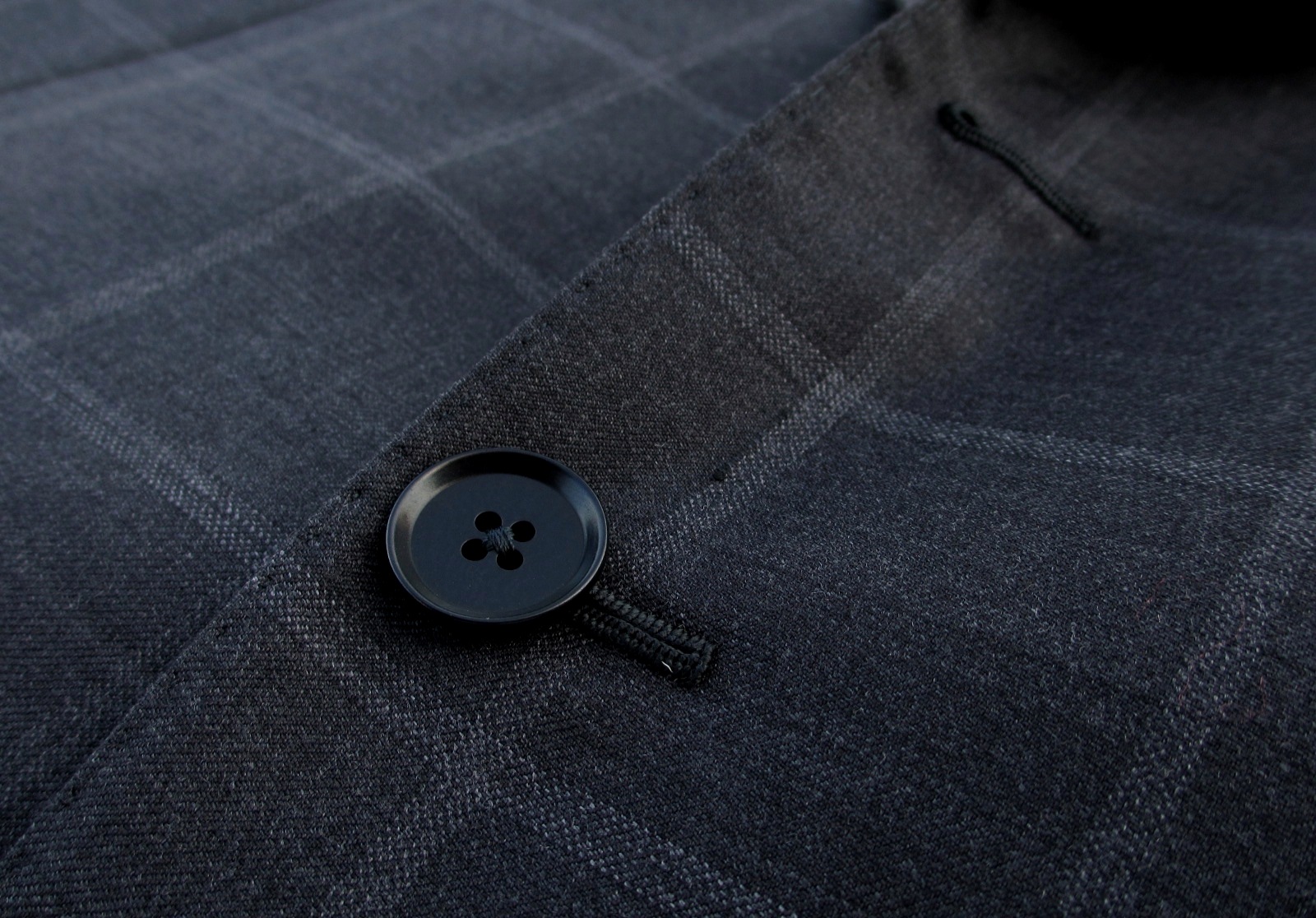 起毛感のないウール100%のウインドウペン柄スーツは、チャコールグレイでセレクトです。しなやかで上品な光沢をもち、スリーシーズン着ていただけるスーツに仕上がっています。