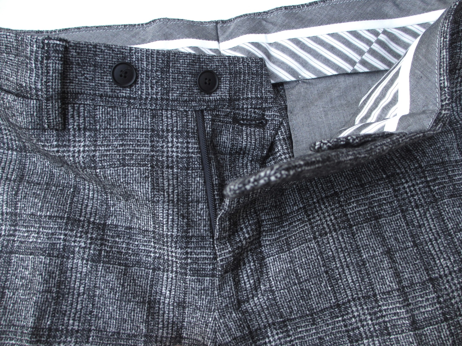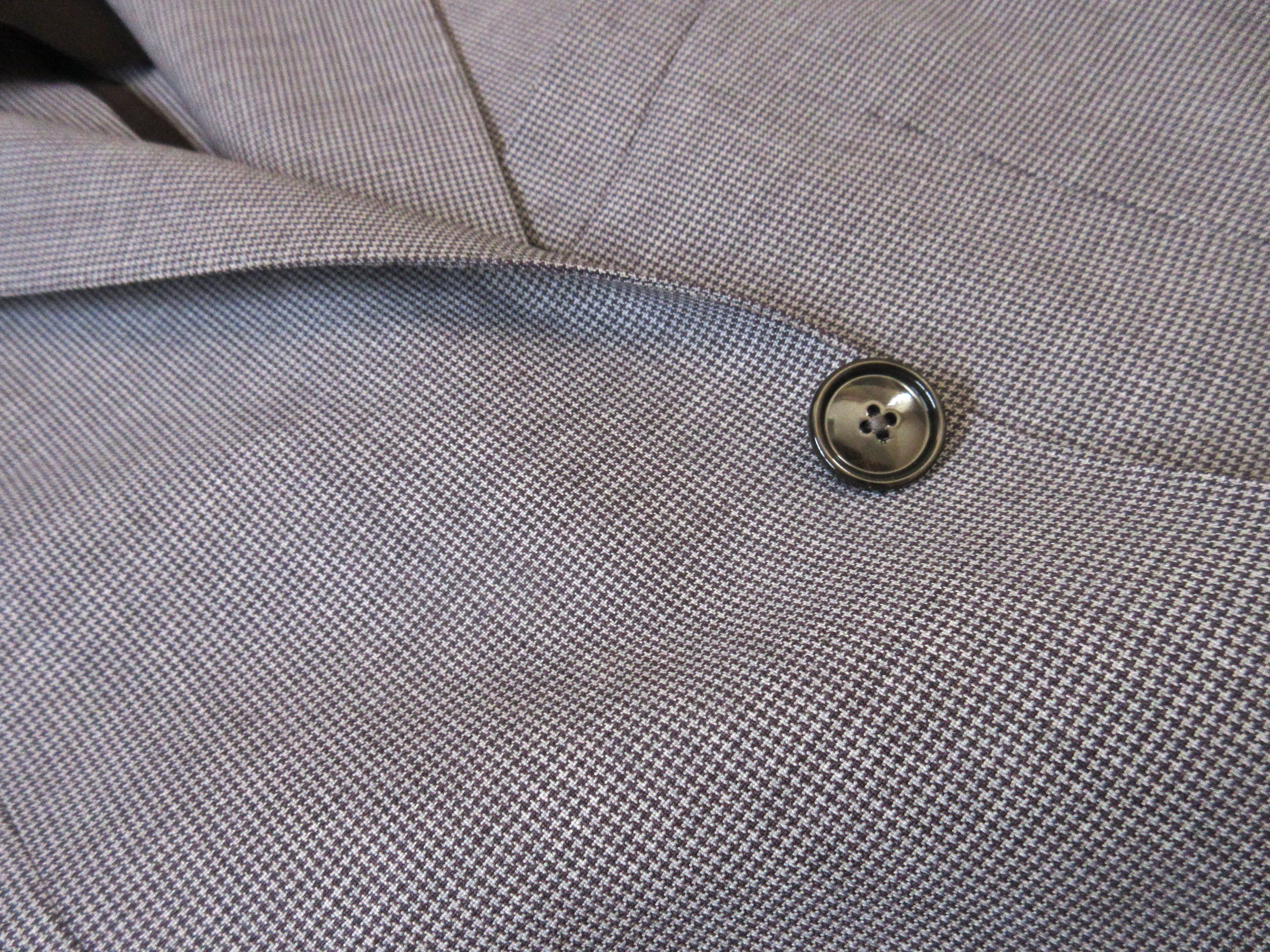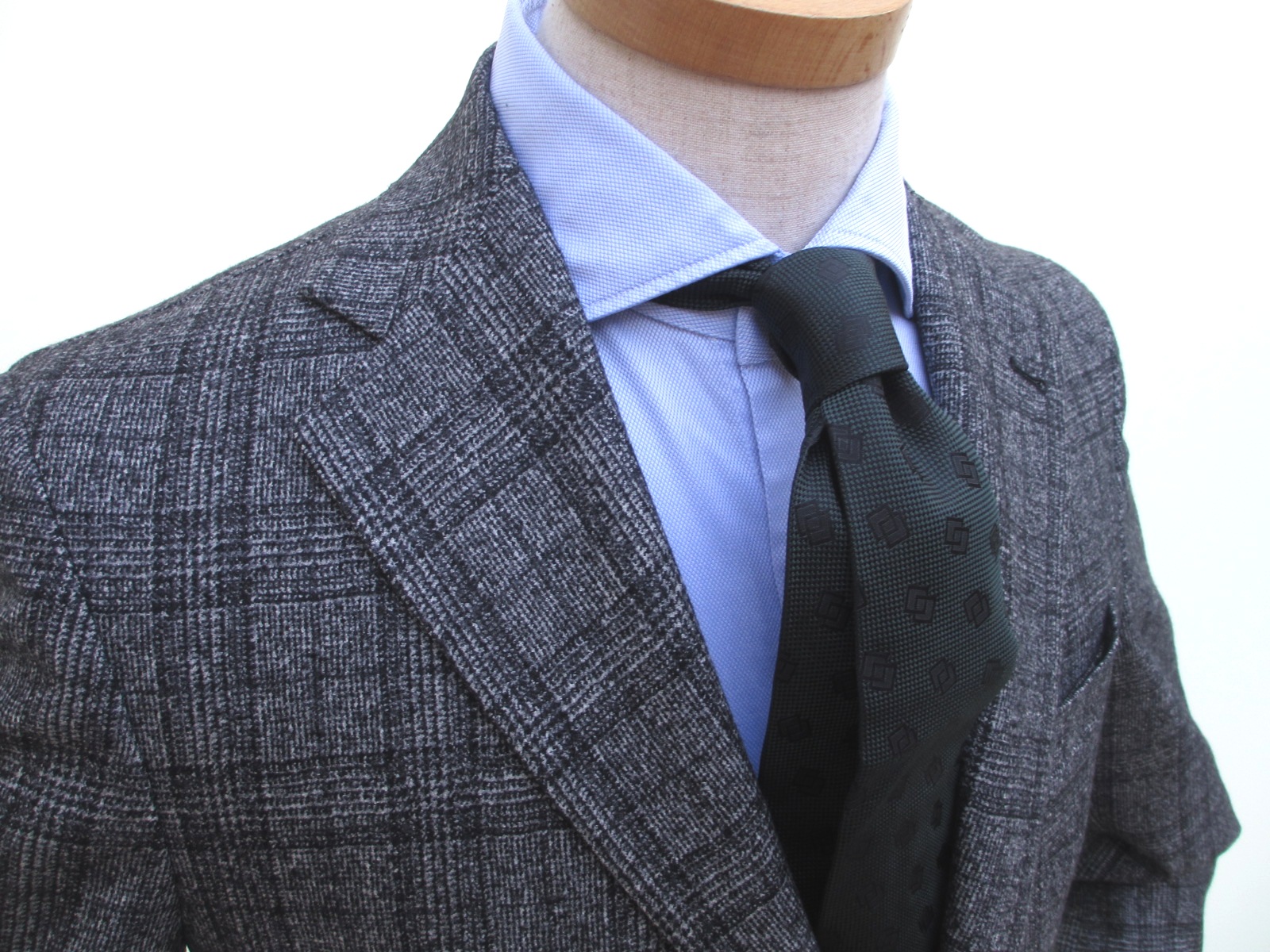 高級感ある生地です。ミニウインドウペンに見えますが、単調なラインではありません。二つの異なるラインを重ねた表情のある控えめなダブルウインドウペン。更にチャコールにはダークグレイの、ダークブルーには明るめのブルーが。実際の色合いは、上の画像より、もう少し濃い色になります。