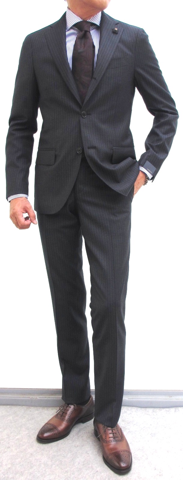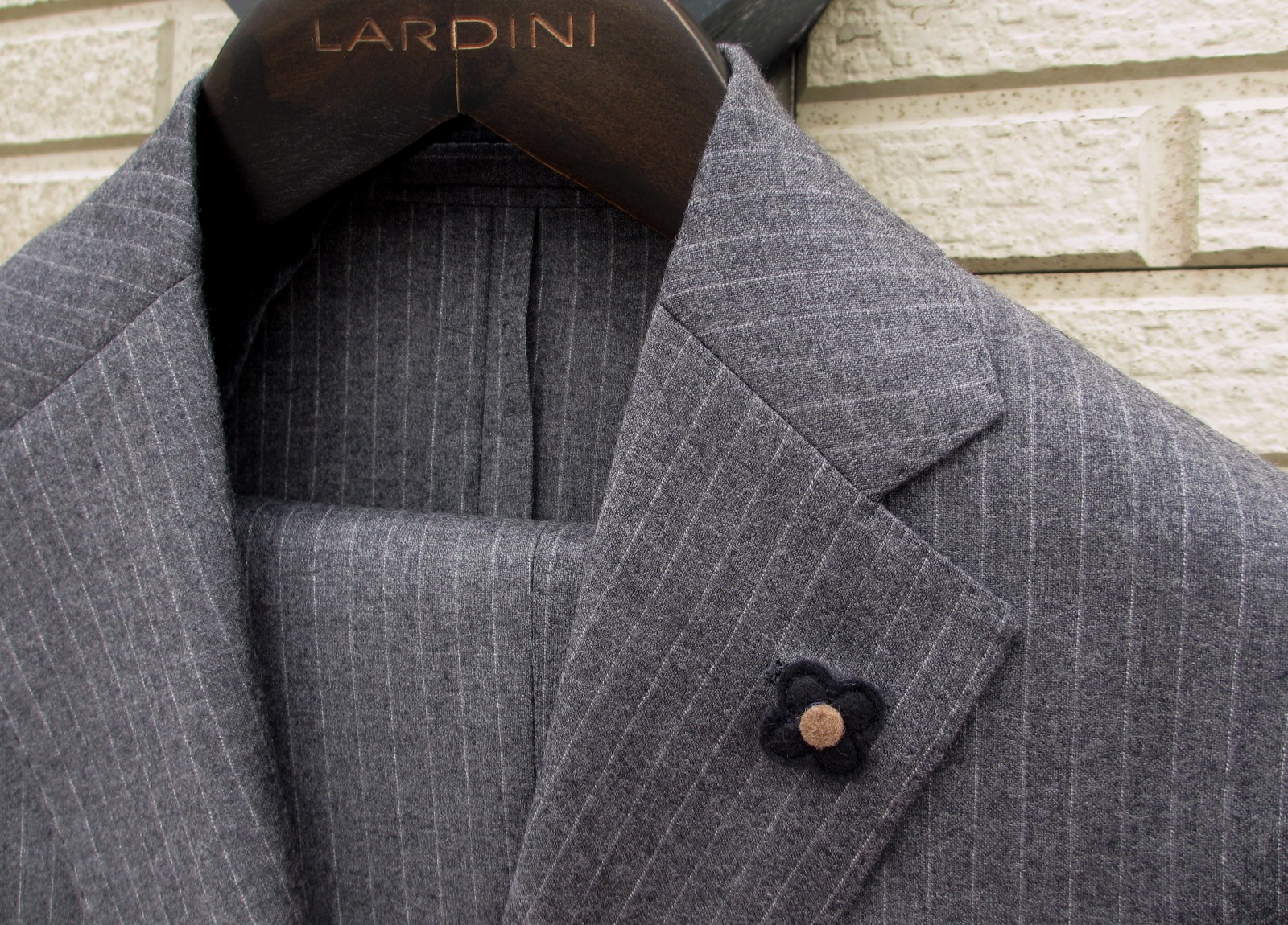 やっぱり、大人のスーツ姿って、素敵ですね。鏡に映った姿に惚れ惚れ?なんて思わせてくれる【LARDINI/ラルディーニ】のスーツでした。