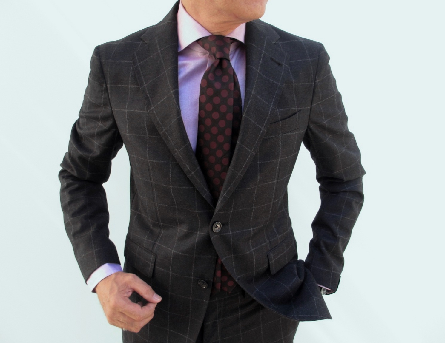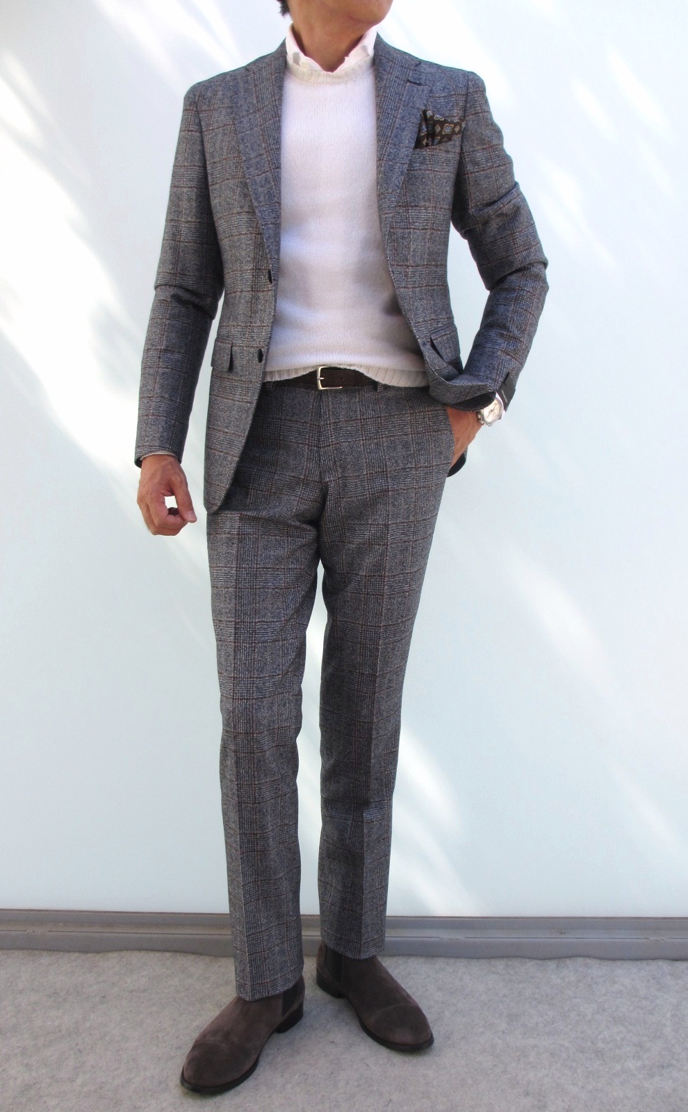 ウインドウペン人気は、ジャケットだけではありません。控えめなウインドウペンなら、スーツとしても魅力のある柄です。
