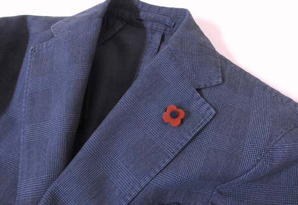 3月1日にご紹介させていただいたコードレーンジャケットと比べてください。こちらは凹凸感はなく、シルク混ならではの光沢のある、しなやかな表情です。先にご紹介したコットンスーツ同様に軽い着心地が魅力。ストライプ柄も細かくなり、無地感覚でお使いになっていただいても良さそうです。