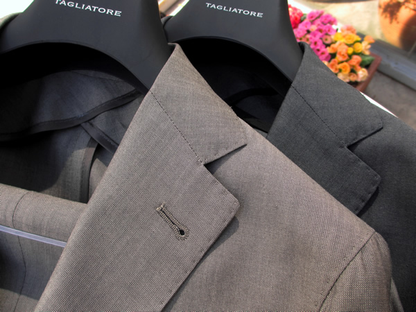 シルク混の光沢ある生地は、画像では分かりづらいかもしれません。この光沢感がオーソドックスな色柄でさえ、モダンに、そしてセクシーに魅せてしまう、そんなオーナー兼デザイナーのピーノ氏の成せる技でもあり、【TAGLIATORE/タリアトーレ】の魅力でもあるのです。