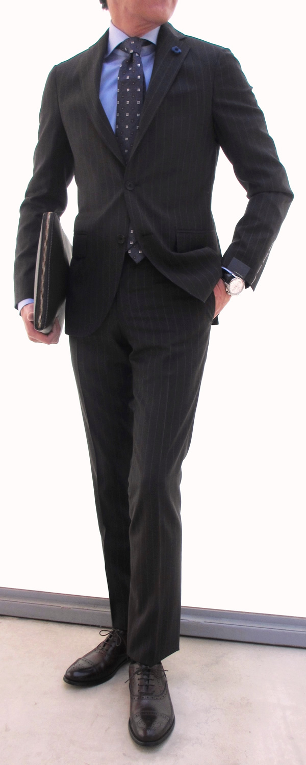 【TAGLIATORE/タリアトーレ】、今季初のスーツです。背筋がピンと伸びるのは、やはりスーツ。敢えてタイトに44を着てみましたが…。