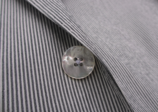 しなやかながらもハリコシのある手触りは、独特。フェードしたブルーもヴィンテージ感溢れる表情です。3釦の真ん中、掛け釦にのみアイコンであるフラワーの造作が。粋な計らいです。