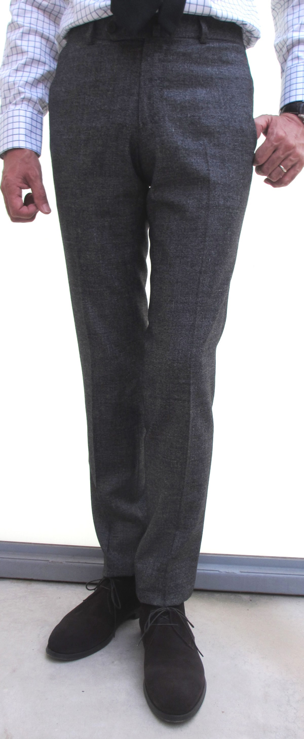 着丈の短い「GREGORY/グレゴリー」には、自ずから細身のパンツをセレクトしております。ヒップ周りやワタリは、かなりタイトになりますが、ご心配要りません。体型に合わせて補修できるように、考慮してあります。