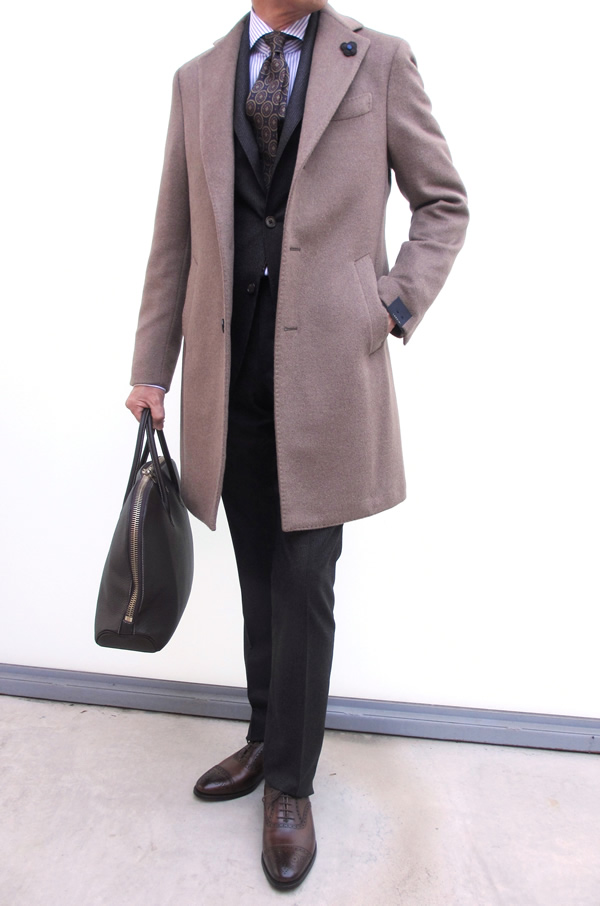 子供の頃、家族で出掛けた名古屋の東山動物園。私の手を引いた父が、こんな感じのコートを着ていた写真があります。父が亡くなってから、父のクローゼットを片付けていると、その当時のコートが出て着ました。打ち込みのしっかりとした厚手のコートで、羽織るとずっしりとした重み。今では、この重みは耐えれないほど…。もちろん【LARDINI/ラルディーニ】のコートは、快適な着心地です。