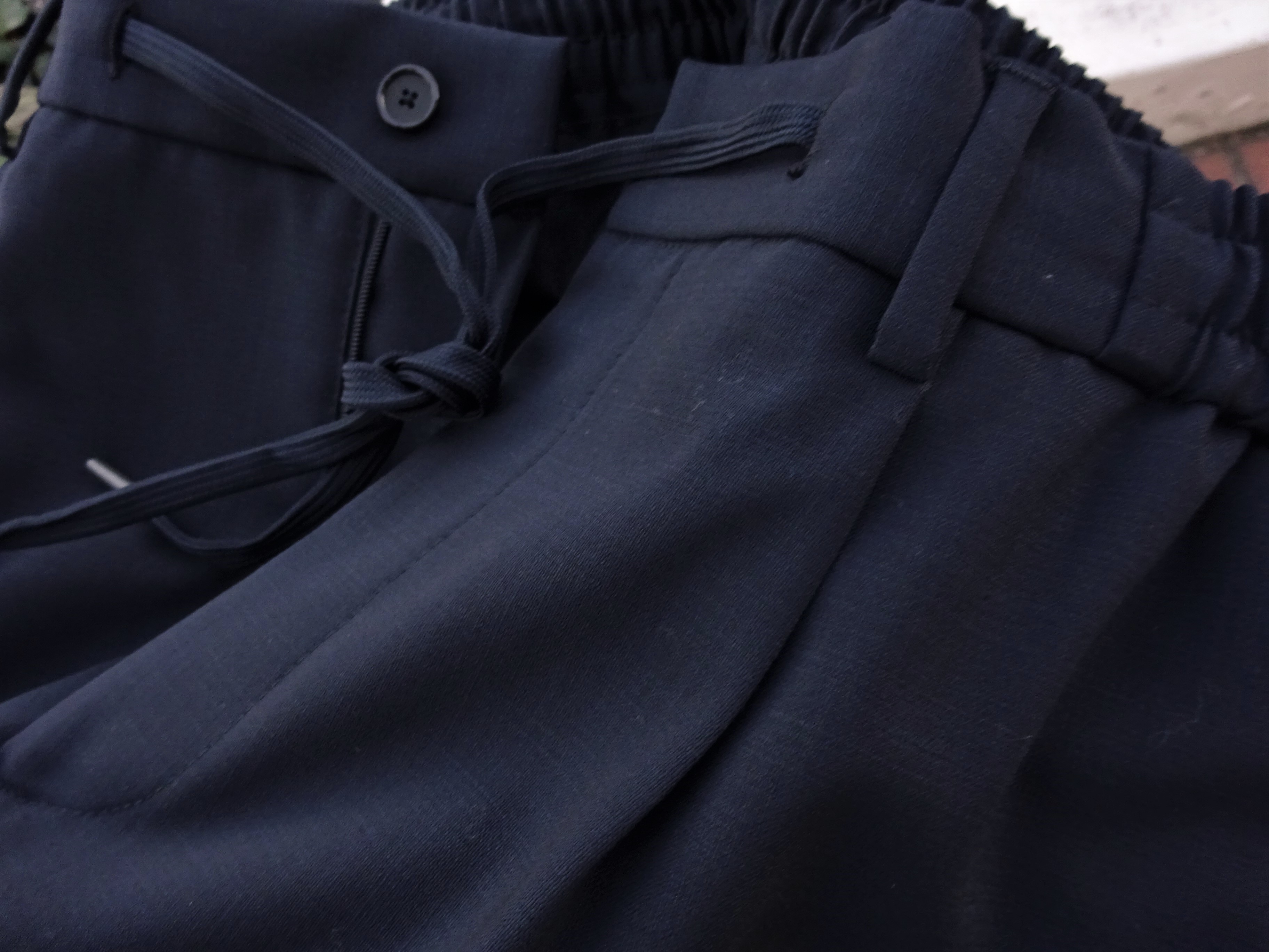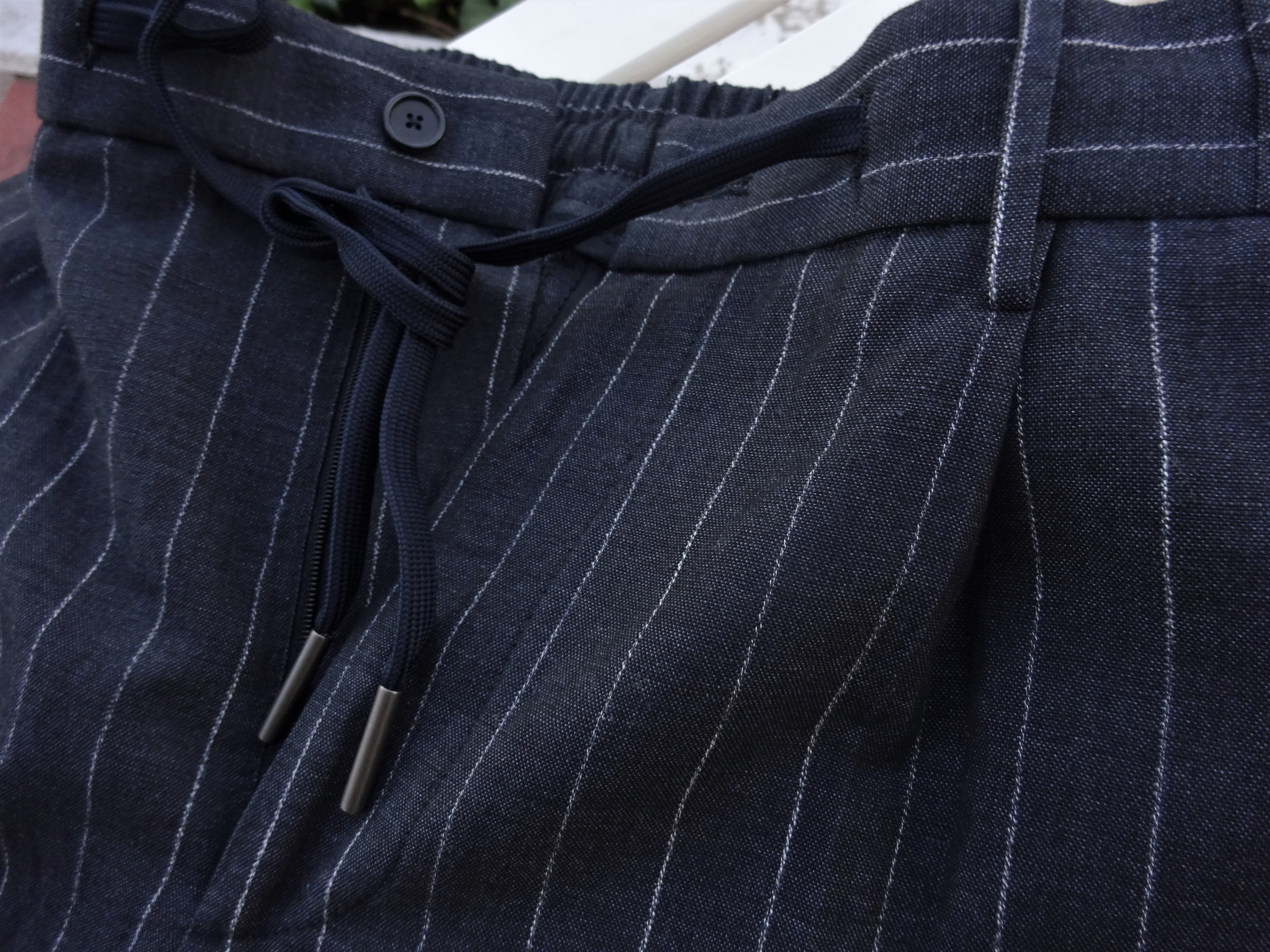 さらに下半身を快適にすることで、真夏でも上着を着ることを躊躇わせません。ドローコード付きのシャーリングパンツは穿いた瞬間、その気楽さに驚かされるでしょう。それでいて、ちゃんとしたフォルムを見せるテクニックは、さすがの一言。たぶん使わないと思うループ付き。ウエスト周りが気になられるようなら、ベルトを使うこともできる、思いやりのあるパンツに仕上がっています。