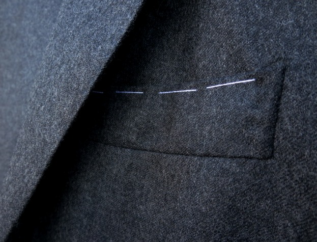 やっぱ、これでしょうと選んだのが、こちらのスーツ。モデルは、昨日と、そして本日、先にご紹介させていただいたハーフキャンバス仕立て「NAPOLI」。その肩の仕立てを軽くした3つ釦、2パッチポケット仕様の「Posillipo」。単品ジャケットとしても着用可能な万能モデルです。これを着て行こうと決めたのは良いのですが、着る季節はもう少し先。そうなると、タコよりフグ。この上にコートが必要になりそうです。
