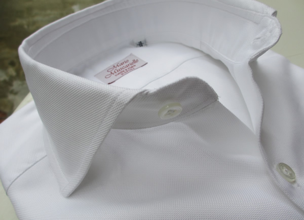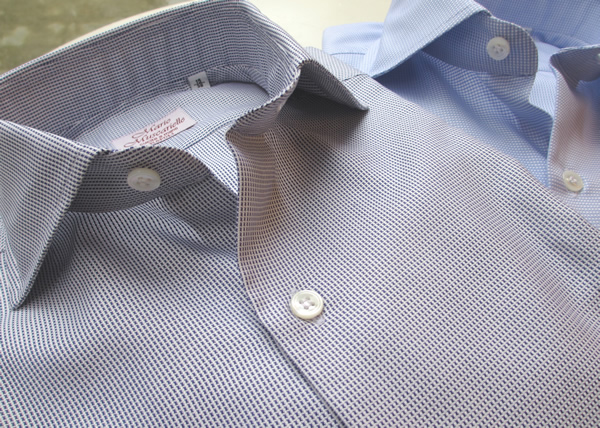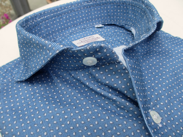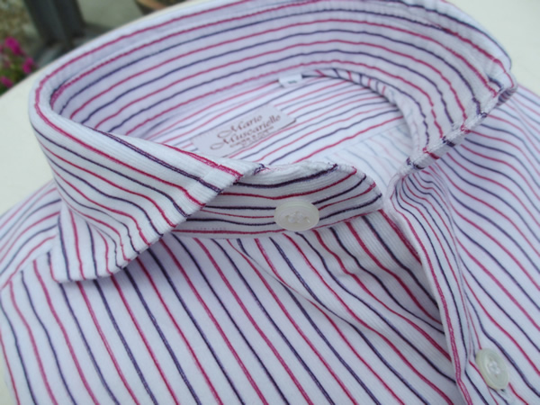 本日も昨日に続き、【Mario Muscariello/マリオ・ムスカリエッロ】。ドレスのご紹介です。ドレスシャツを展開するのは、今日の雨のように久しぶりです。ナポリの由緒正しきカミチェリア。用意されている生地も素晴らしく、熟練した職人さんが丁寧に縫い上げるムスカリエッロのシャツは、申し分ありません。5.6年ほど前でしょうか。個人的にも同じ生地の衿型違いを2枚購入して以来、休む間もなく着続けておりました。最近、着なくなったのは、襟、袖裏の汚れが気になってきたことと、スリム化する他のアイテムとのバランスの悪さです。でも100回以上も洗濯したであろう生地や縫製に何の遜色もありません。