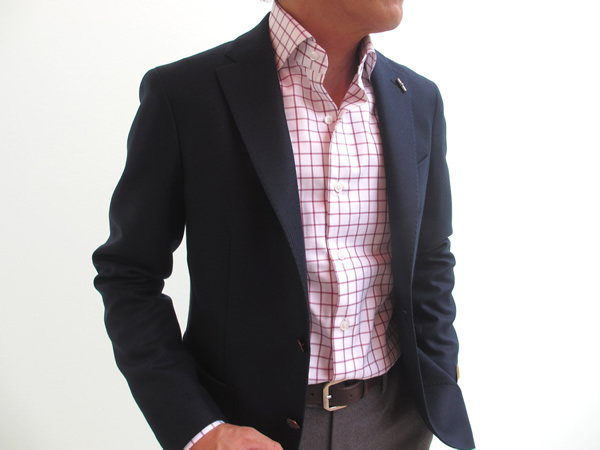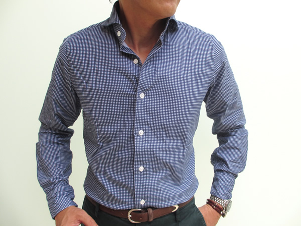 前回のLARDINI/ラルディーニのスーツをご紹介させていただいた際に着用していたのが、このシャツです。各雑誌のスーツ特集を見ると、チェック柄にタイドアップしているコーディネートが目に付きます。個人的にも昔から大好きな組み合わせ。ミディアムグレーの無地スーツにギンガムチェックのシャツを着て、タイはニットかレジメンタル、或いはペイズリー。仕事が楽しくなりそうです。