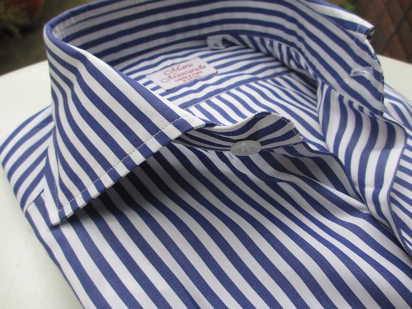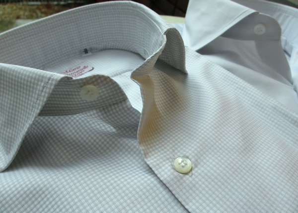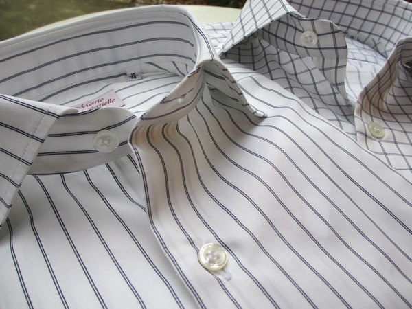 友人がミラノのルイジ・ボレッリでシャツを3枚オーダー(パターンオーダー)しました。生地を見ていたら、以前から探していたネイビーのギンガムチェックが見つかったようです。ミニマムが3枚からということで、他の柄を足してのオーダーです。ただ楽しみに待ったシャツの出来上がりは、全くサイズが合わなく、結局、着ていないそうです。かなりの金額でしたので、もったいない話ですね。ちょうど昼休み時に入る前で、フィッターの方が気もそぞろで応対したせいなのか、採寸する力量が無かったのかは分かりません。もしかして最初からサイズゲージが日本人に合わなかったのかもしれません。結局、彼は最近、モデルチェンジして入荷したマリオ・ムスカリエッロのネイビーのギンガムシャツを購入。求めていた色、柄の大きさも、もちろんサイズもぴったりでした。