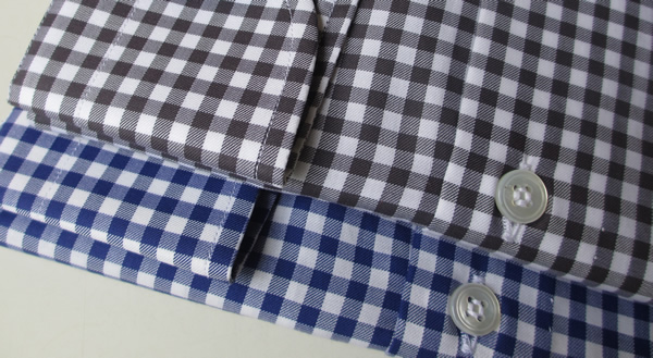 生地モデル「SOUL」シリーズからは、ギンガムチェックです。茶ががったグレーのトープと明るめのネイビーの2色をセレクト。ウインドウペン同様、定番の使いやすいシャツです。