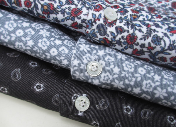 ジレと同じコーデュロイのプリントシャツ。素材感、色柄と【Mario Muscariello/マリオ・ムスカリエッロ】ならではの他に見ないシャツです。