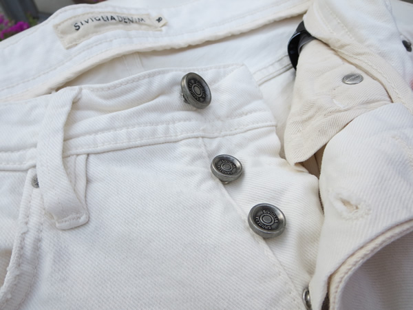 ボタンとブランドタグが新しくなった【SIVIGLIA/シヴィリア】のホワイトデニム。待望の入荷です。深みのある秋の色を更に引き立ててくれるホワイトデニムは、必需品です。そろそろ汚れが気になる方も買い替えのチャンスです(私のことでした)。