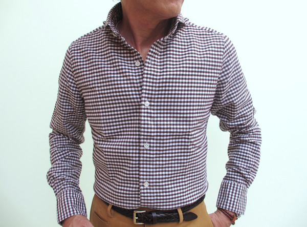MODEL:「DANDYLIFE」変則マイクロチェックシャツ