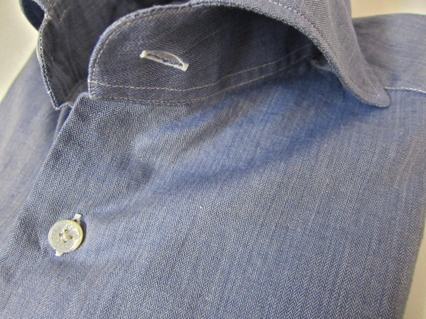 まずご紹介するウエスタンシャツは、【AVIO/アヴィオ】らしいノリで襟を立たせてみました。今季は、デニムとダークネイビーのポプリンでオーダーしています。