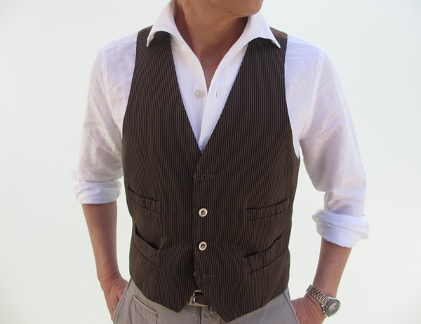 昨日、ご紹介させていただいたFInamore/フィナモレの「USTICA」。合わせていたジレが、【BOGLIOLI/ボリオリ】です。