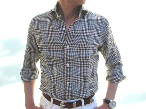 リネン100%の無地は、4色ご用意しました。柔らかく丈夫で、吸水性、発汗性に優れたリネンは、旅に着ていくシャツとしても最適です。肌寒い時、リネンのシャツにカシミアのセーターという組み合わせも理にかなっていると言えるでしょう。真夏の暑さに対応できるのも、やはり質の良いリネンのシャツですね。