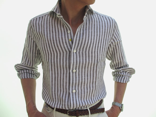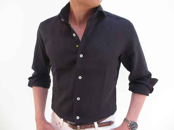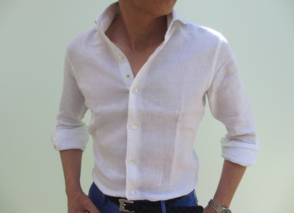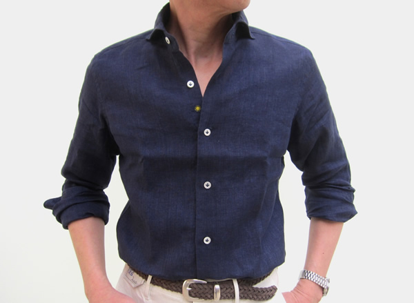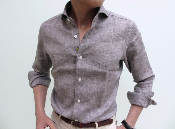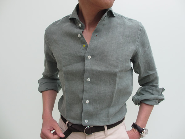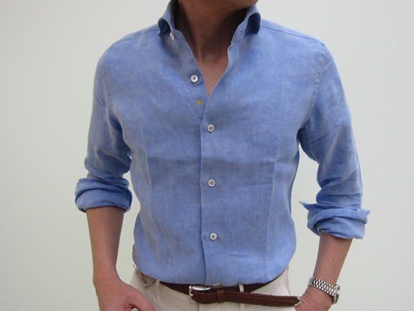 今日は生憎、肌寒い日になりましたが、リネン100%のシャツは夏の暑い熱を冷ましてくれます。袖をまくって、カジュアルな着こなしも楽しめますが、ジャケットやスーツの下に合わせて、少し気取っていただいてもいいですね。